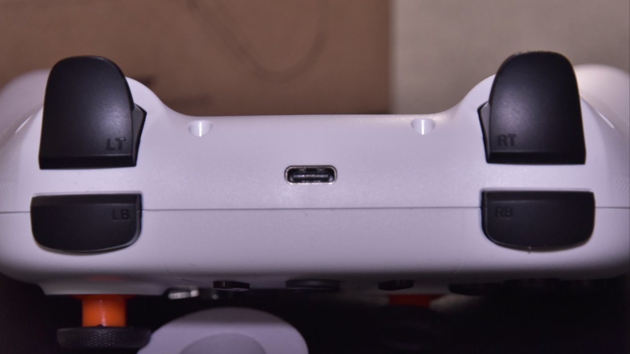 顶部摇杆为碳膜线性扳机,为弧状设计,可以卡主手指防止滑出,手感上非常跟手,肩键为导电胶按键,按压力度比较适中。
