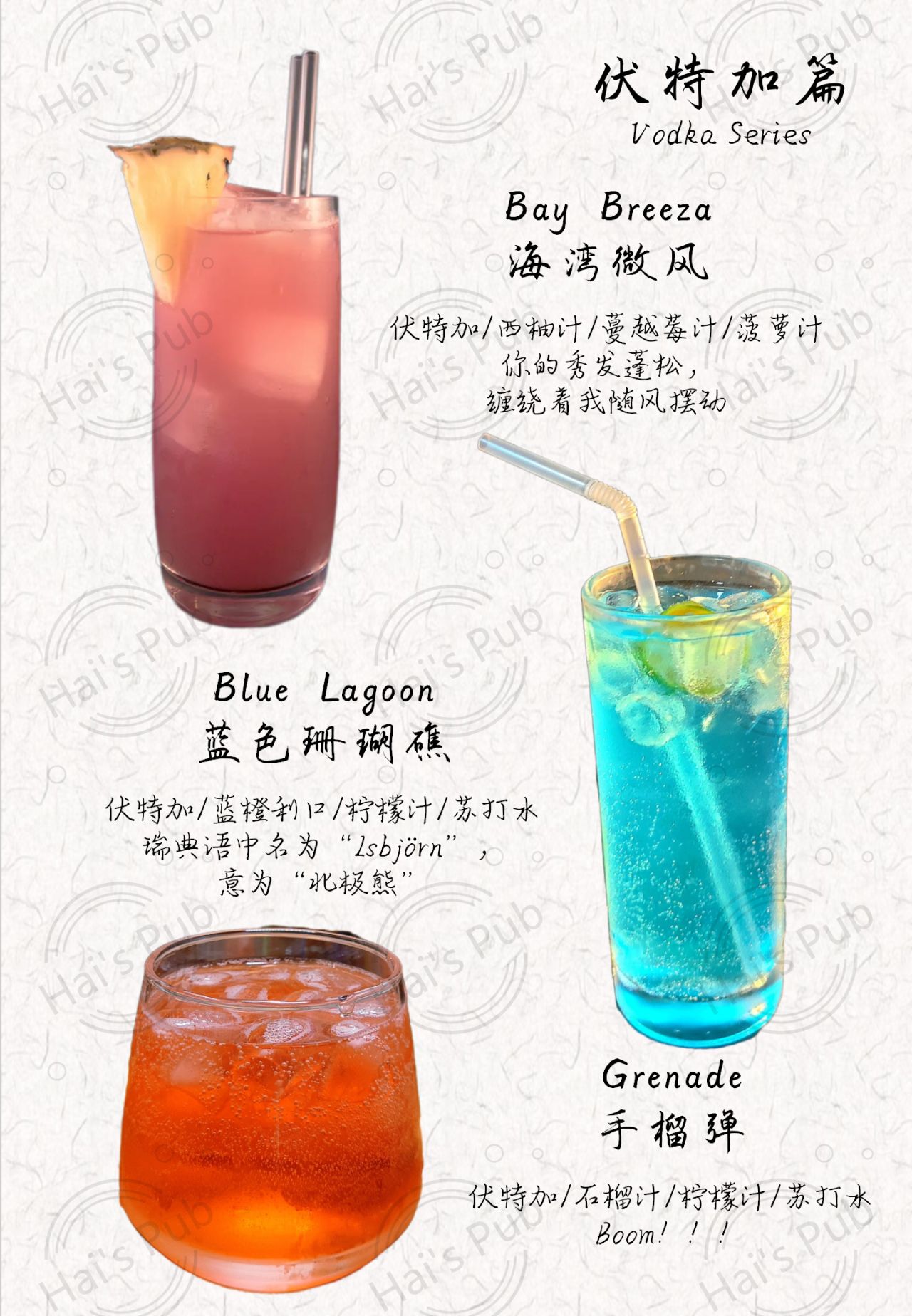 今天帶來兩杯簡單易飲的伏特加調酒——藍色珊瑚礁,海灣微風