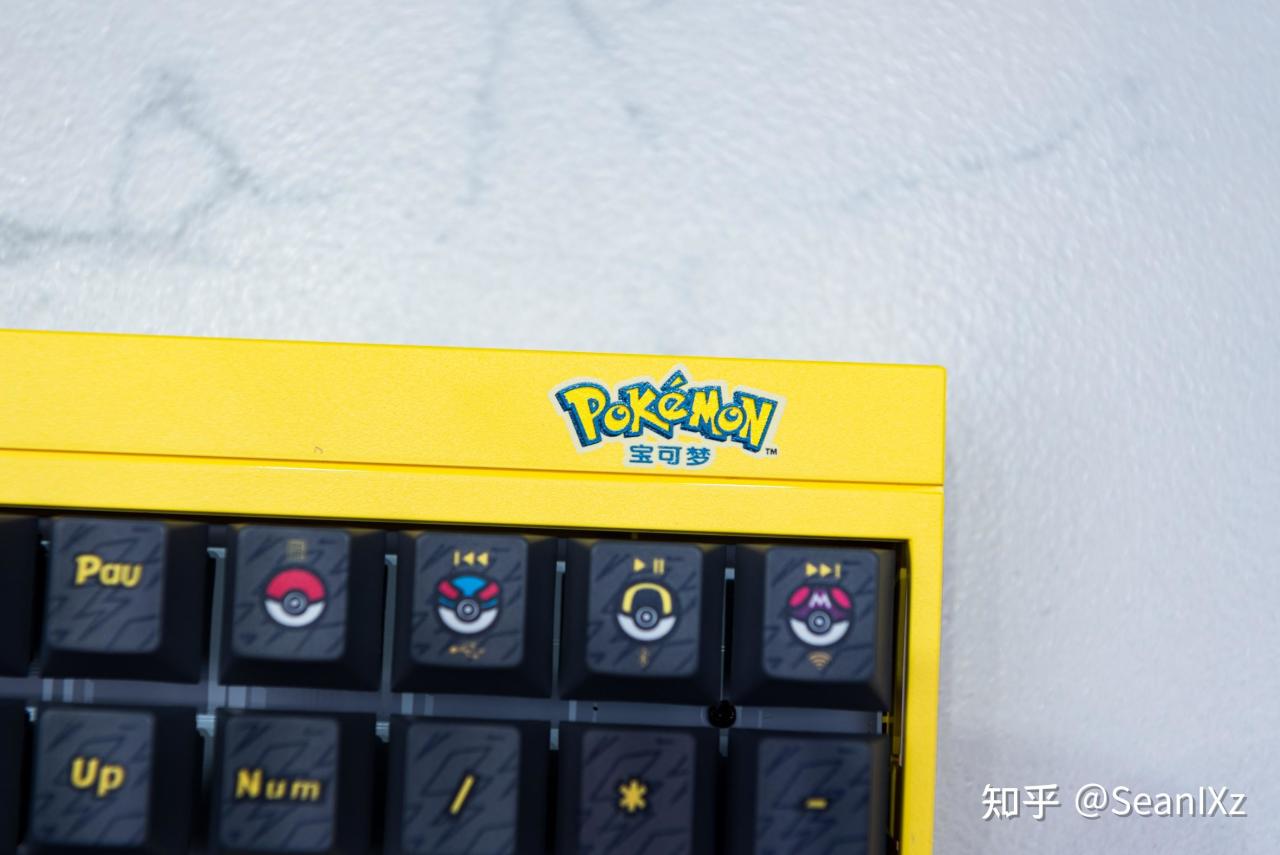 键帽设计也十分用心,比如小键盘区上部功能键上的精灵球元素,黑色键帽上的闪电表示,满是“PIKA PIKA”的空格键,整体Q版字形,无处不透露着可爱的风格。