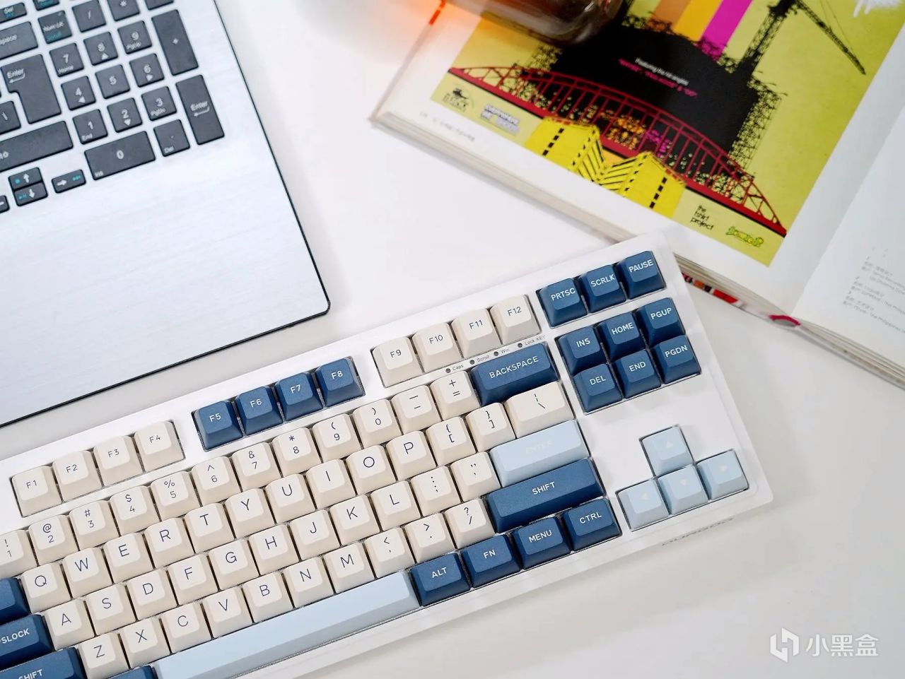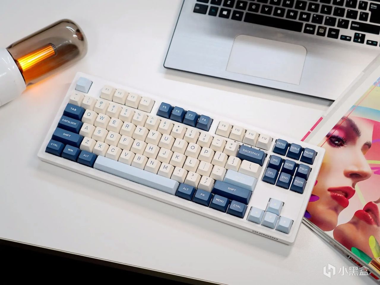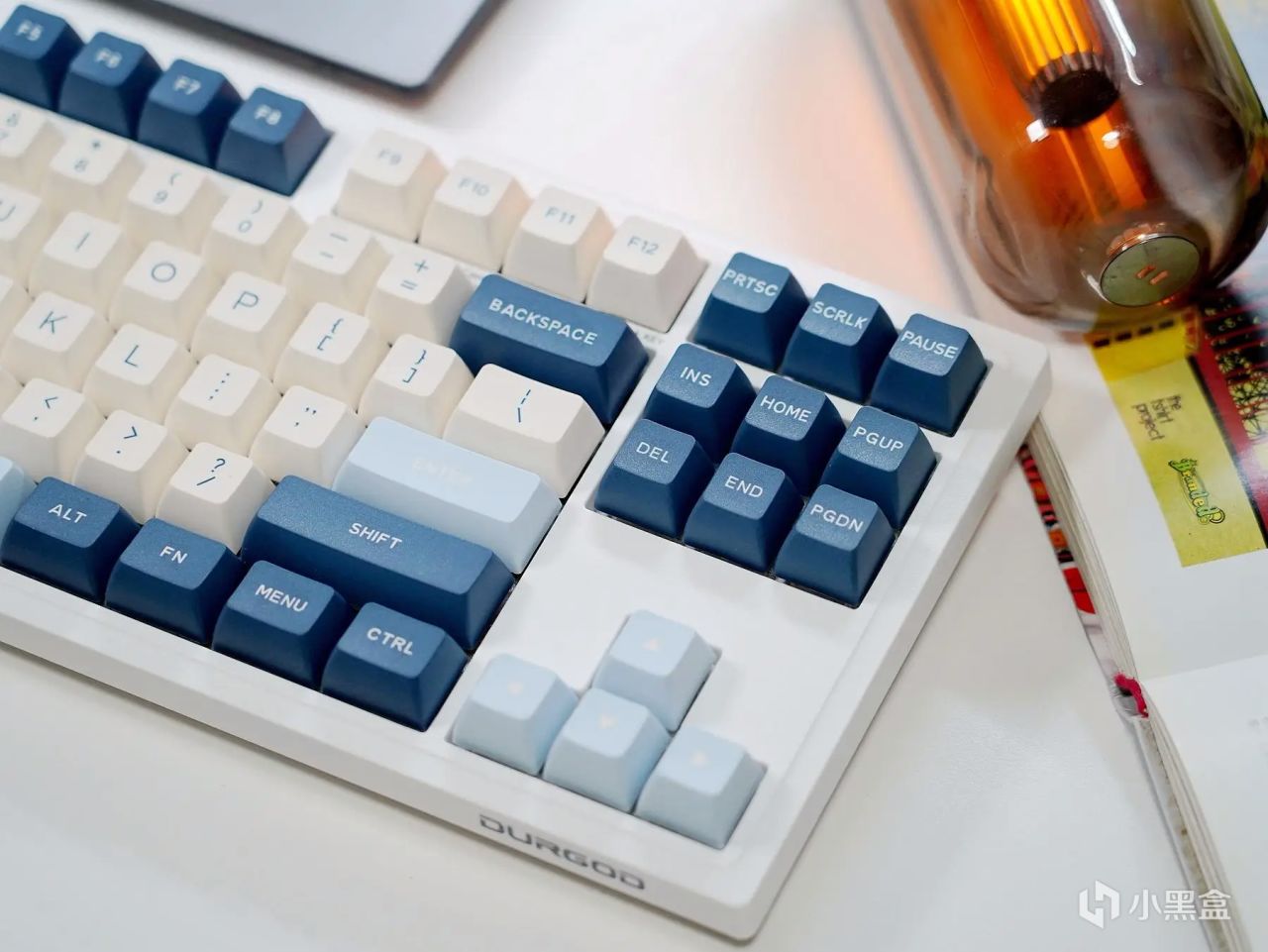 作为一款87键阵列的小键盘,杜伽K100在体积颜值上要比全键阵列的键盘要讨巧得多,结合其“奶白+粉蓝+黛蓝”的三色拼搭键帽,整体表现显得年轻又不失活力,也不会出现过于夸大的涂鸦勾勒,能够很好地满足办公、居家、游戏等等环境需求,且无论男女都可以轻松拿捏。