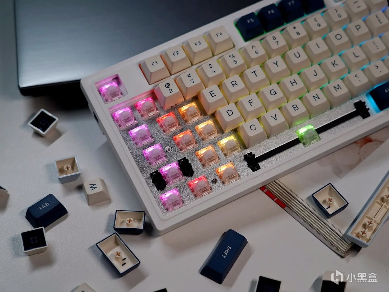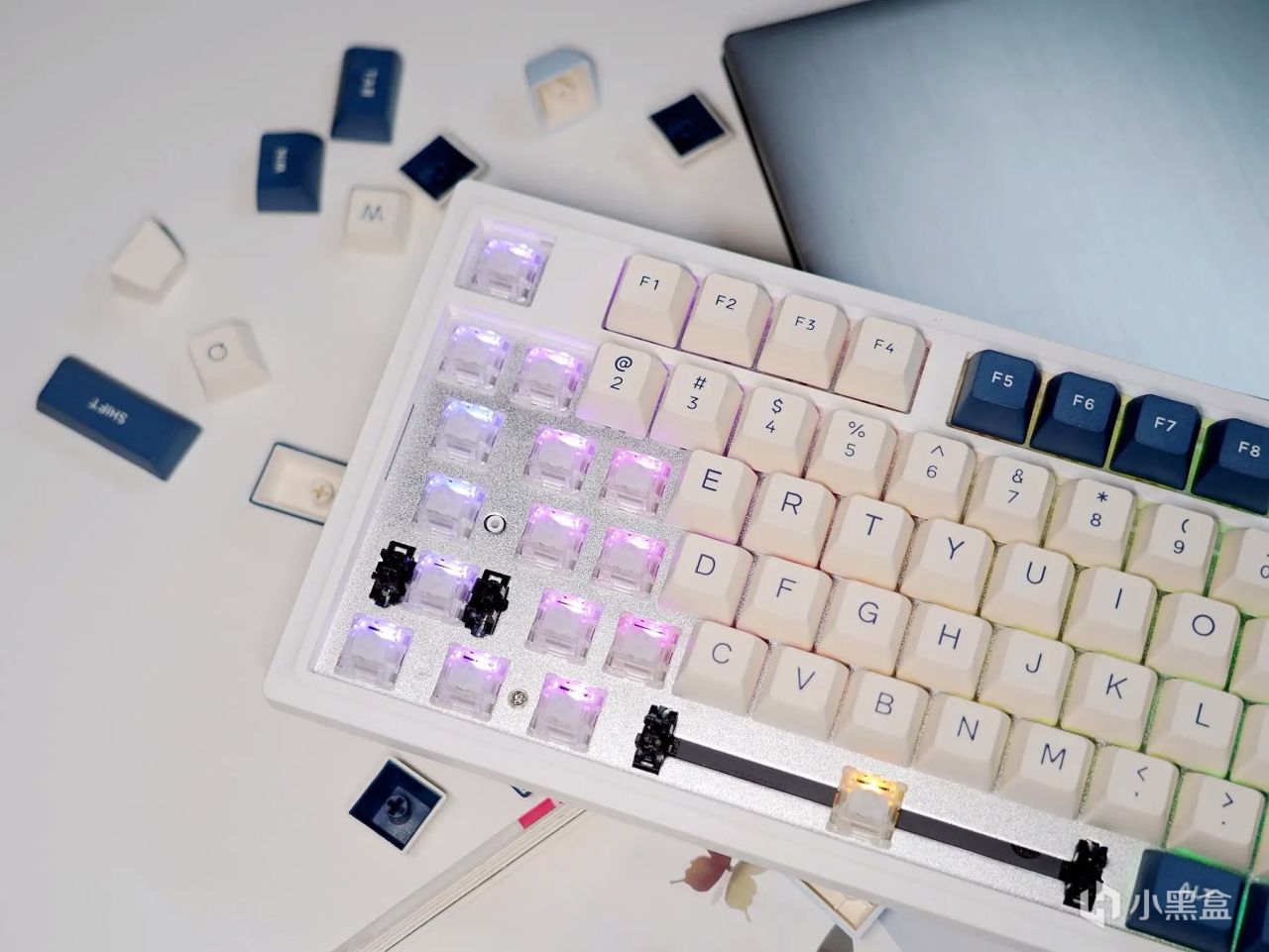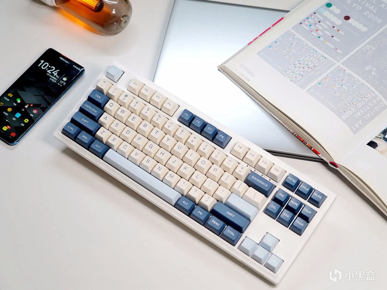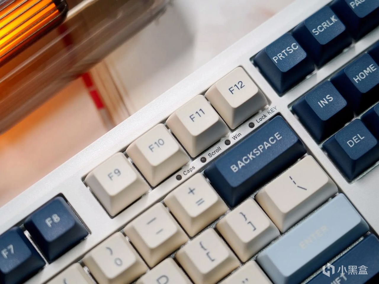 作为一款87键阵列的小键盘,杜伽K100在体积颜值上要比全键阵列的键盘要讨巧得多,结合其“奶白+粉蓝+黛蓝”的三色拼搭键帽,整体表现显得年轻又不失活力,也不会出现过于夸大的涂鸦勾勒,能够很好地满足办公、居家、游戏等等环境需求,且无论男女都可以轻松拿捏。