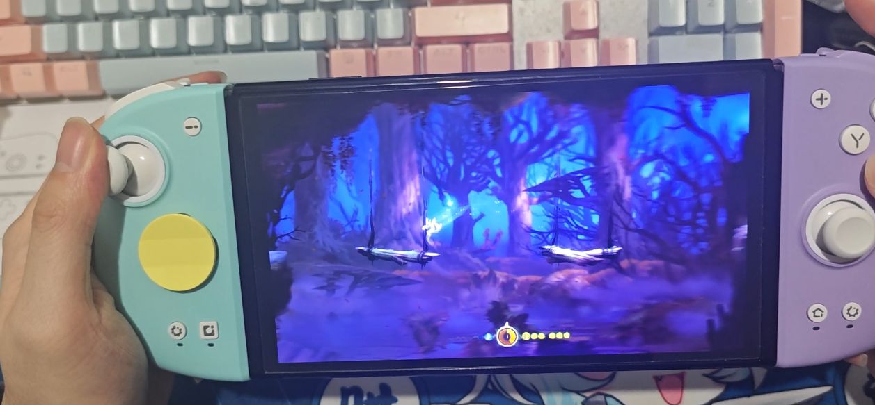 双子星二代握起来的手感比joy手柄的手感要好些,相当于是把一个大的NS类型手柄分成两半装在ns左右两边。