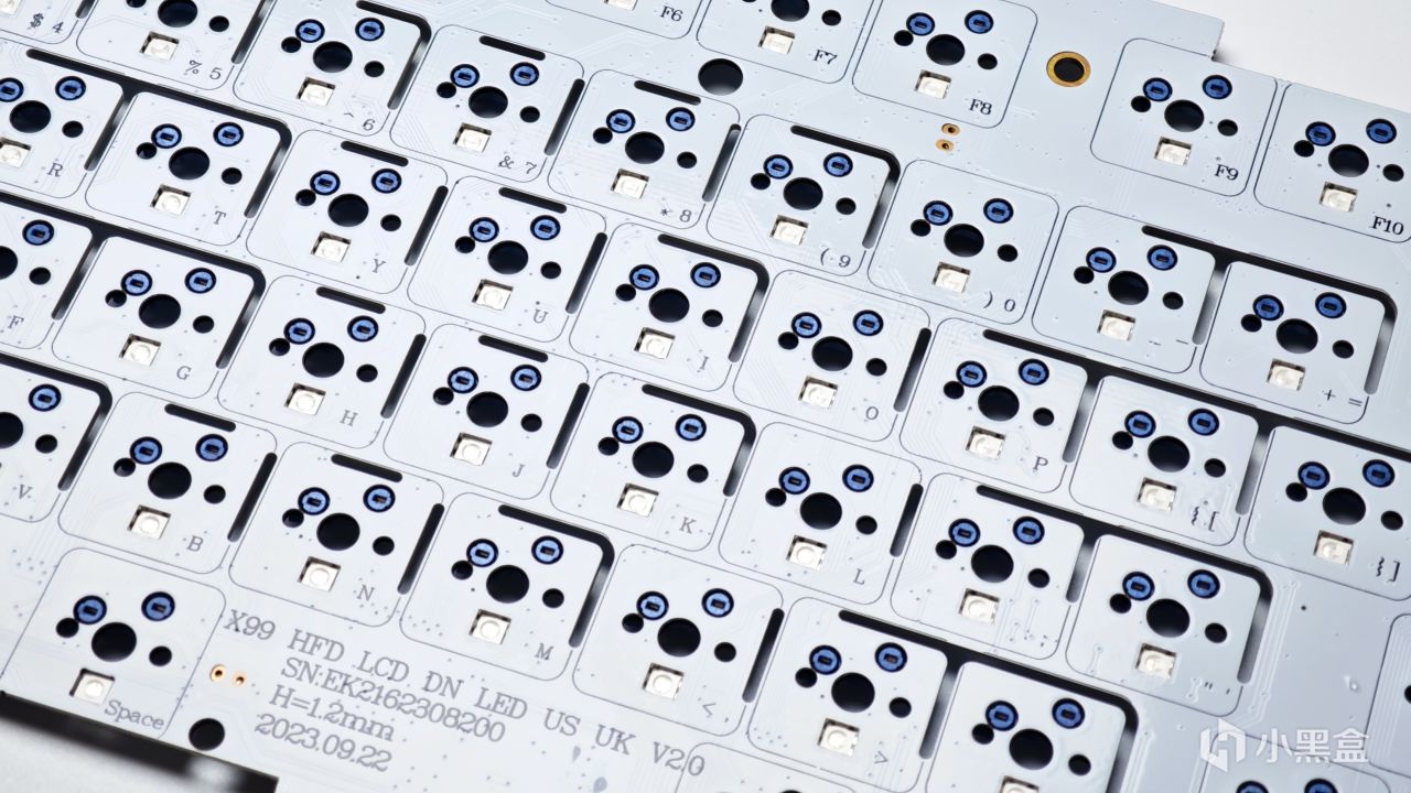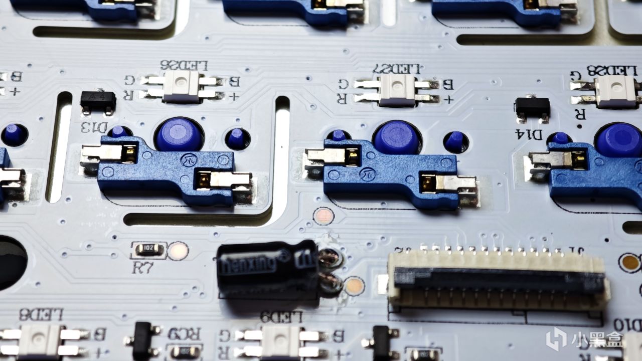 PCB方面選擇的是軸座熱插拔,支持大部分三腳/五腳機械軸體熱插拔,軸座品牌通過PCB背面軸座上符號得知爲高特,同時燈位方面爲下燈位,正常使用角度中會有更高的亮度。開槽方面選擇的是最主流的單鍵開槽,不過具體開槽方面有所差別,沒有別的鍵盤那麼激進,較爲保守的做法。