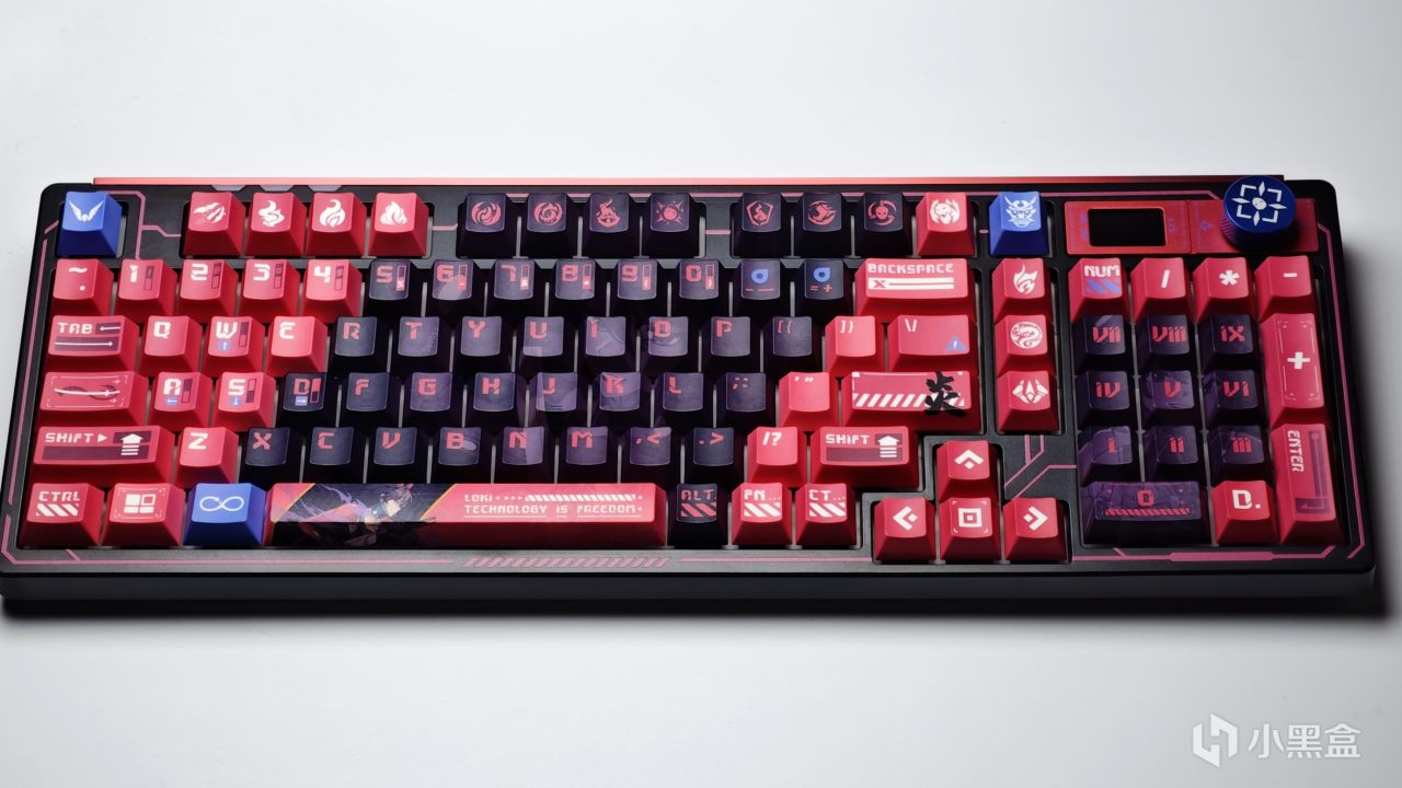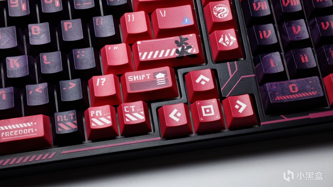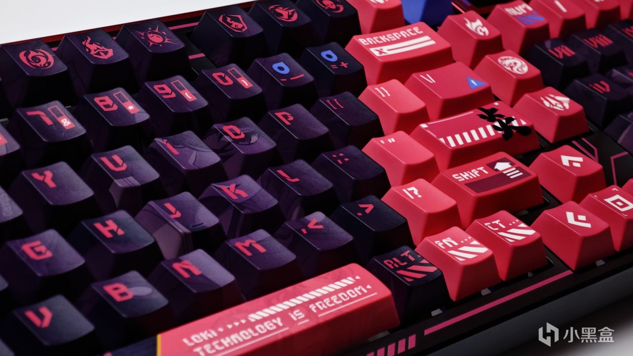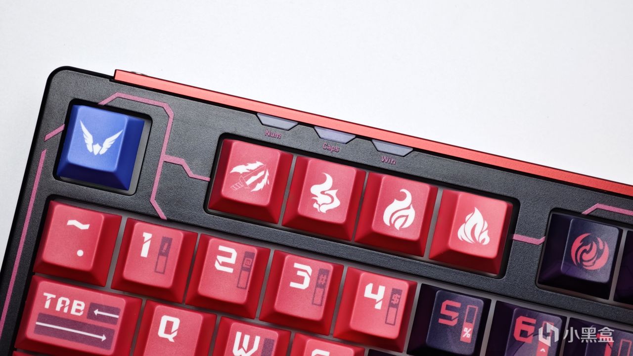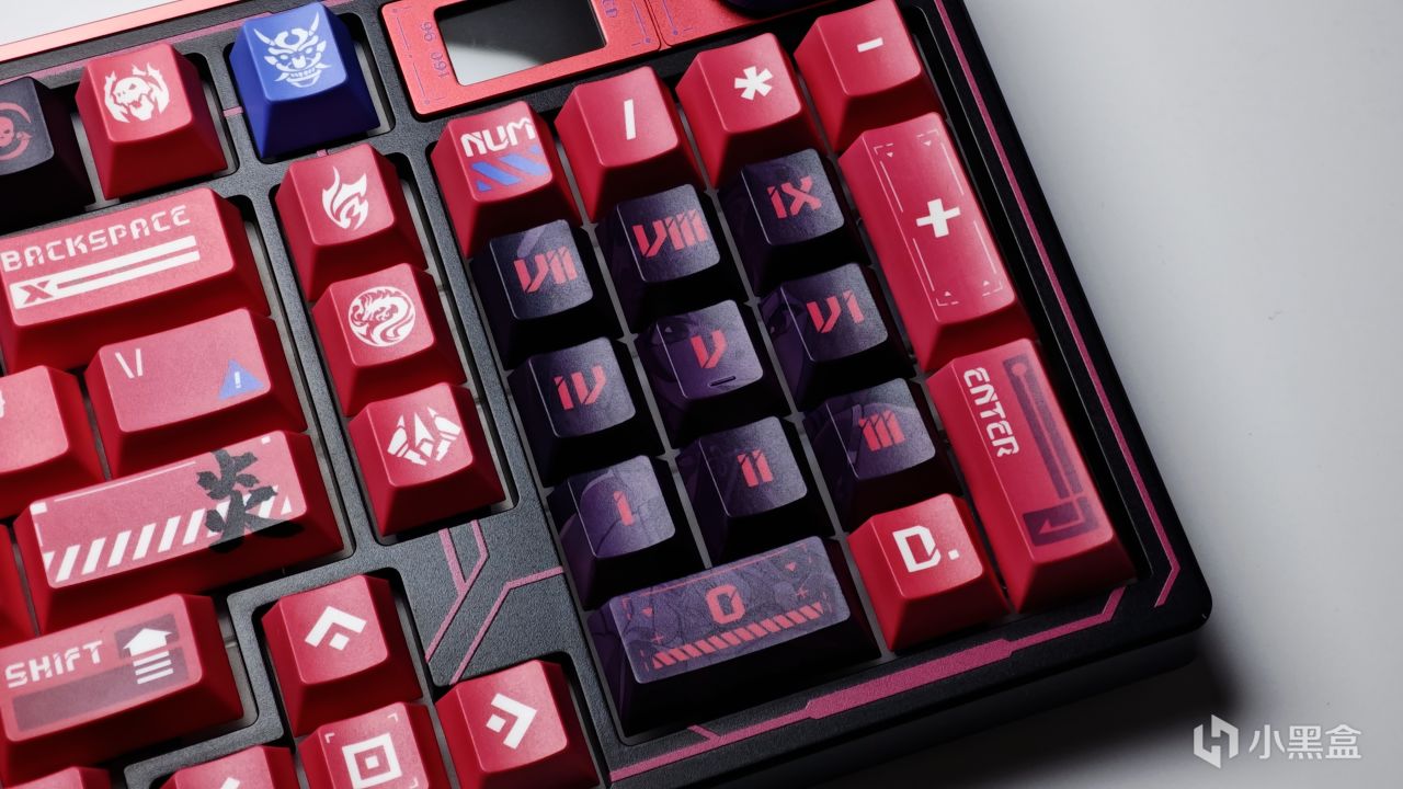 主鍵區以及數字區域都藏着一個半身像,雖然說也算分屍鍵帽的一種,但好在很淡,正常不細看是完全看不到的,無論是乍一看還是細看都能感覺到瓦爾基里的細節。其他鍵帽就不用說了,整體的做工包括鍵帽圖案都非常不錯。