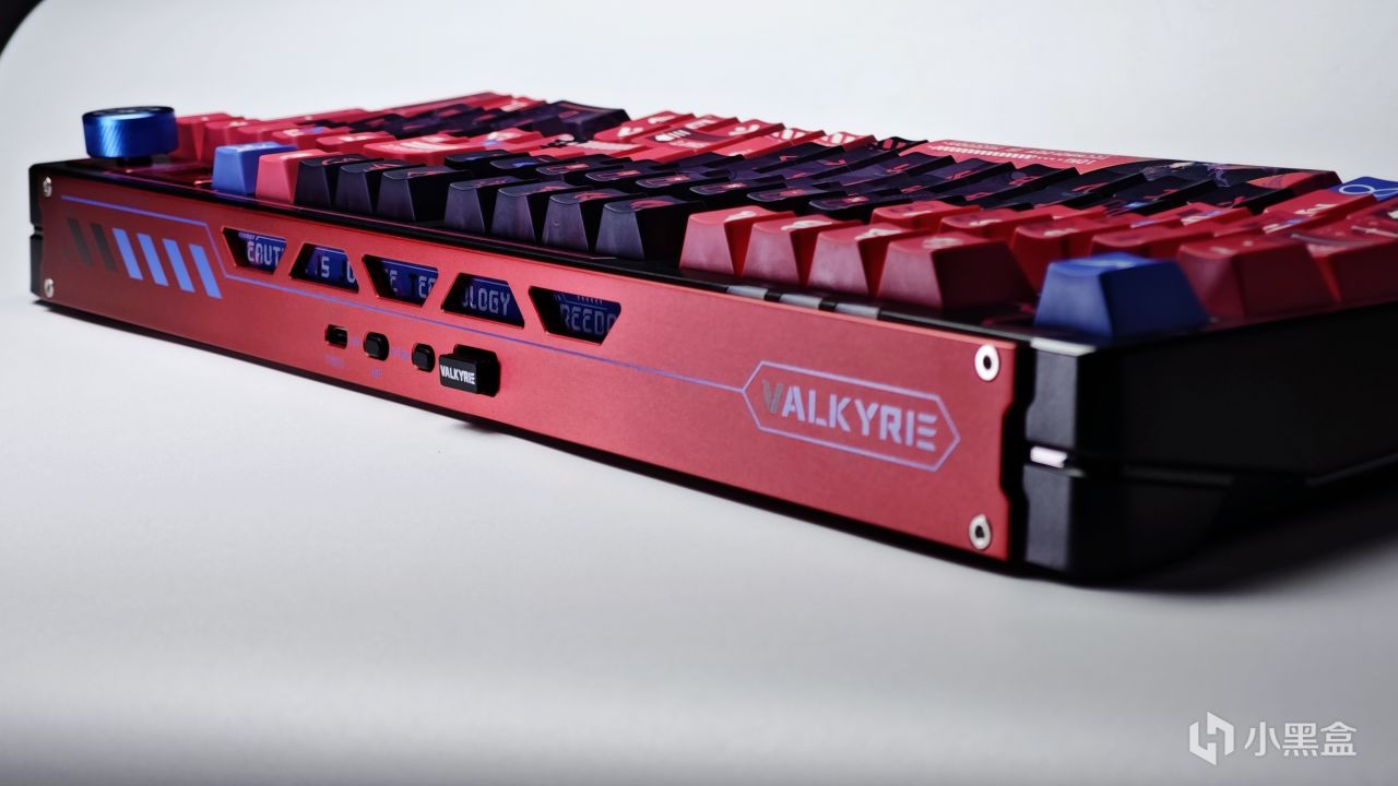 右側編輯鍵區域,正常98配列應該是配備4-5顆編輯按鍵,而瓦爾基里則是選擇配備一塊屏幕以及一顆旋鈕,可以更直觀的觀察到鍵盤的工作狀態,或者是自定義一個GIF動圖上傳上去。不過在續航方面會有所降低,可以按照自己需求以及喜好來自定義。