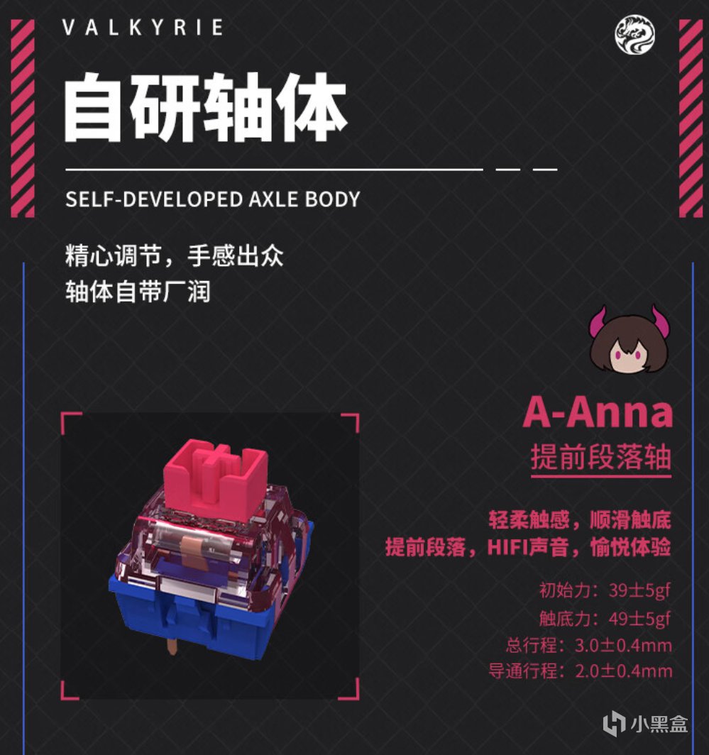 名字變了要不軸體類別也變一變?這次的安娜軸不再是線性軸體了,而是一款提前大段落軸體,換個說法或許就能讓盒友們明白是什麼意思,提前大段落軸體的手感上偏向薄膜鍵盤的手感,但並不意味着就是薄膜了,機械軸的回彈、觸底等手感方面還是佔有優勢的。