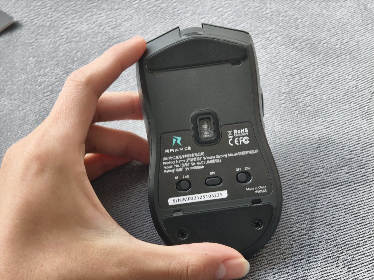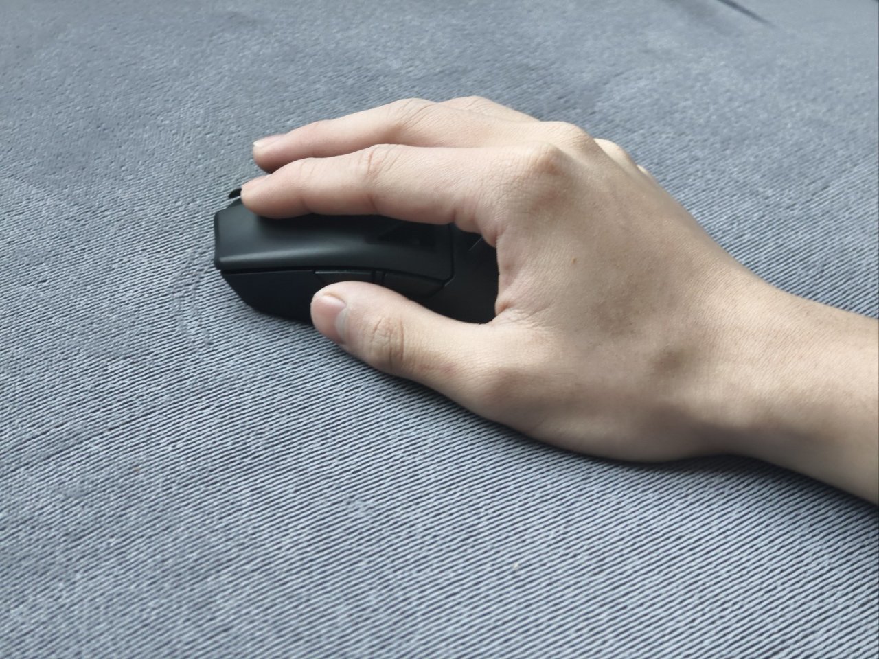 这个其实也不用多讲了,和蝰蛇的模具一样嘛,那感受也差不多,因为鼠标顶部的延伸很不错,你的手可以牢牢地握住它,非常适合趴握的玩家,但是我的手呢多少还是有点偏小,只有16.5cm,握持的时候总还是有点不适,这边建议🤚17—19cm的人使用。