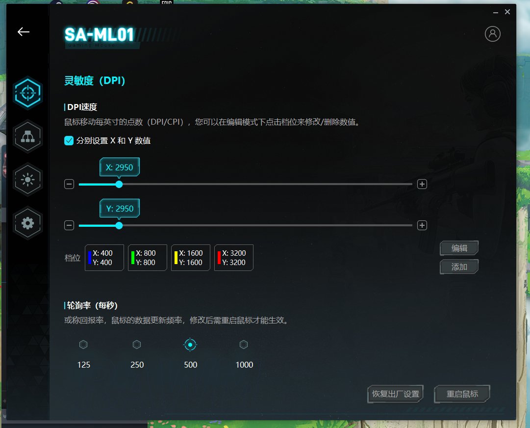 驱动方面不是国产鼠标常见的公模驱动,是仁模家自研的,之前有听拿到内测版本的大佬们听说过他家的驱动做的挺拉跨的,但是现在经过了一个月的打磨,该有的功能也都是有了,并且还有点好用。它的X轴与Y轴都是可以独立设置的,可以做到更精确的定位,还有lod高度可以进行调节,能在不同材质的鼠标垫上进行正常的工作。
