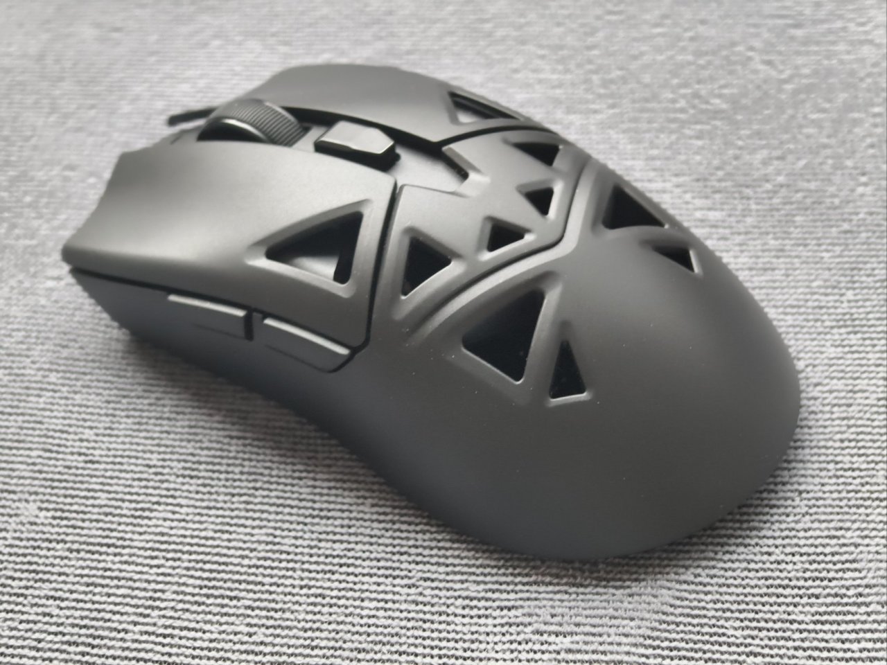 相信大部分盒友们看到这张图片已经感觉到很熟悉了,没错,他采用了毒蝰的模具,外观的外形和手感可以说是一模一样,可以说是一款平替鼠标了,非常适合趴握,重量方面为66g与毒蝰的74g相比也是略轻一些,可能轻的地方是因为顶部是镂空设计吧。
