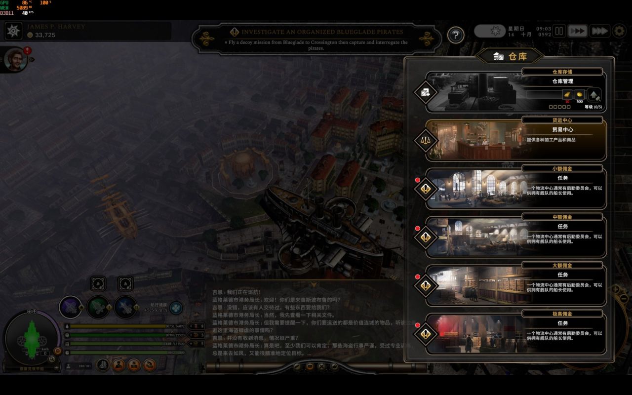 對於一個航行中艦隊來說,材料、燃料、彈藥、船員和士氣是五項基本資源。消耗材料可以修復飛艇,消耗燃料來保持告訴的巡航飛行,足夠的船員才能保證飛艇運行。在城市港口處,玩家可以花費金幣來補充各項物資,不同位置的港口補給站所提供的資源類型價格不同。如果燃料不足,只能龜速航行。在趕路過程中,開啓十倍速之後,掛在後臺也算是划水摸魚神器。