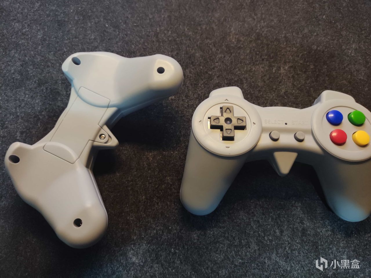手柄的按键和玩家现在使用的PS手柄以及xbox手柄的样貌都不一样,如果之前游玩过插卡游戏机的玩家可能会对这样的手柄十分的熟悉,手柄左侧是上下左右键,右侧是ABXY,中间是一个选择和开始,并没有现在手柄带的扳机和摇杆。手柄使用的是7号电池,在后侧可以更换。