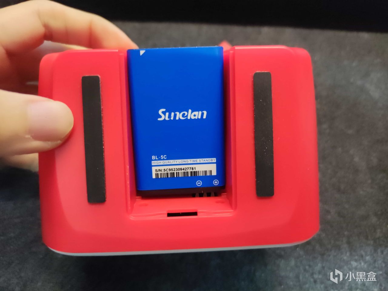 打开下面的电池盖就能看见里面的电池,这款游戏机搭载的是一块1000mAh的电池,可以达到5小时的续航。