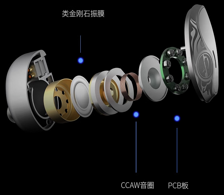 类金刚石 (DLC) 复合材料具有高刚性、轻质量的特点常见于高端HI-FI耳机,更是业内公认的优秀耳机单元膜片材质。