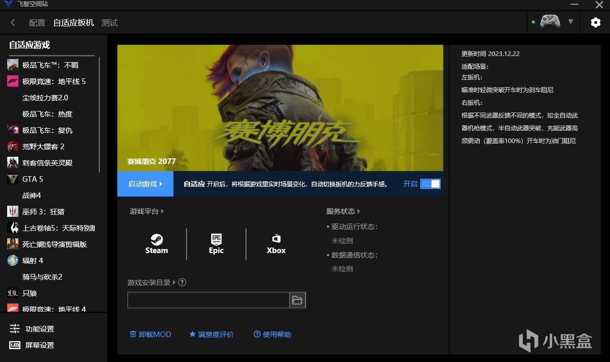 好消息是,从飞智空间站可以看出,2077的自适应扳机终于是处于可以使用的状态了,而上次写八爪鱼3的时候,我就是想用它来做自适应扳机的表现评测的,但当时还在维护,所以只能用小蜘蛛来体验了。