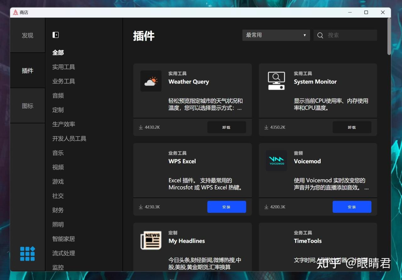 作为Stream Deck的平替,黑爵AKP153同样提供了一个插件商店,提供多种插件和图标可供用户下载使用,目前提供的插件多继承于Stream Deck插件库。