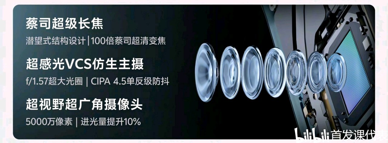 ◆ 后置:50MP 主摄(索尼 IMX920,VCS 仿生光谱技术,OIS)+50MP 超广角(三星 S5KJN1)+64MP 潜望长焦(豪威 OV64B,OIS)三摄,激光对焦摄像头 dToF,蔡司 T* 光学镜头;