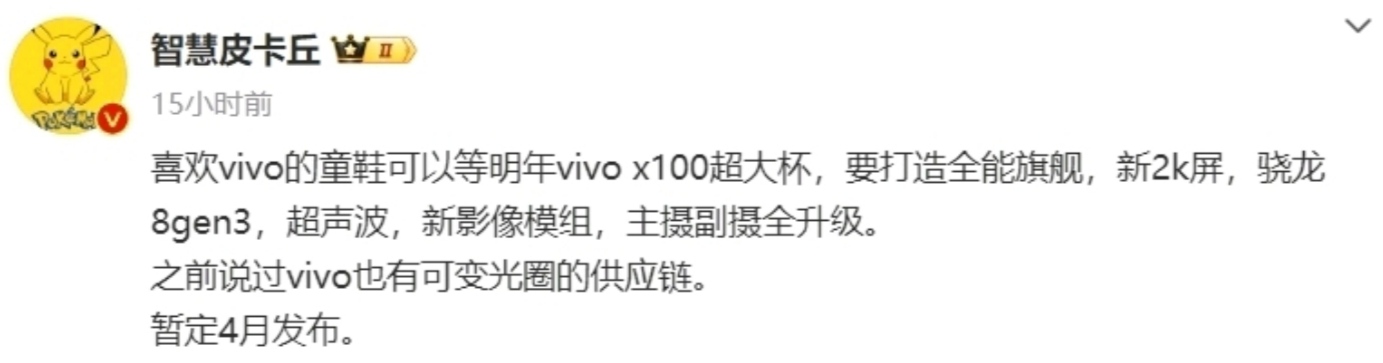 此外,vivo X100系列超大杯,预计配备 50Mp LYT900 一英寸主摄,50Mp 超广角采用新传感器,200Mp 大底潜望镜焦段“略有调整”,采用玻璃机身设计。