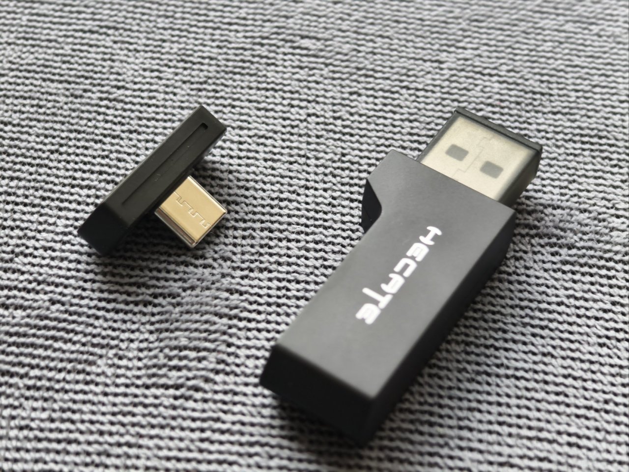 他的耳机的接收器我觉得该重点讲一下,它作为一个tws居然有2.4G接收器,着实是我没有想到的,连接速度,功耗都很强大,并且兼容性和抗干扰能力也很强,对于多设备连接的电竞房/人来人往的接头/信号繁杂的公交站,整体的体验下来都较为不错,也没有出现断联!最主要的一点——它是可以拆卸的,合体状态就是和你日常鼠标键盘的接收器差不多,可以在电脑/ps5上面即插即用。分开的话就是下图中左侧的这个小点的部分,他是TYPE—C口的,也就可以在日常状态下插在手机或者播放器/NS这类物品上使用,还是挺方便的,适用场景很广泛。