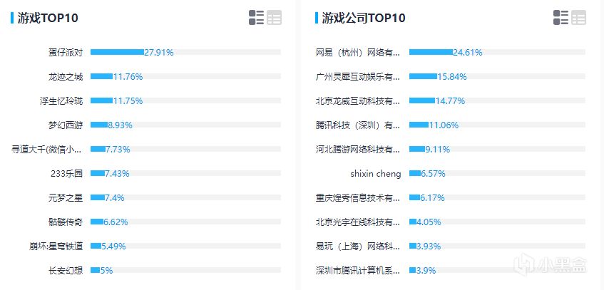 具體遊戲的投放數量排名來看, 《蛋仔派對》、《龍跡之城》、《浮生憶玲瓏》分別佔據了投放遊戲榜的TOP3,佔比分別爲27.91%、11.76%和11.75%。