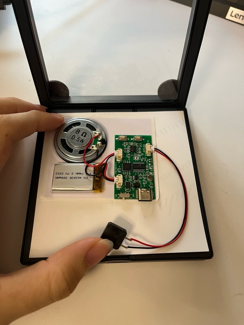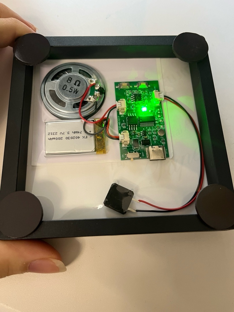 7. 最後把外框合上就大功告成了!(可以藉助背膠和材料包的膠帶等固定,但爲了後面方便更換音樂和圖片我就沒固定)
