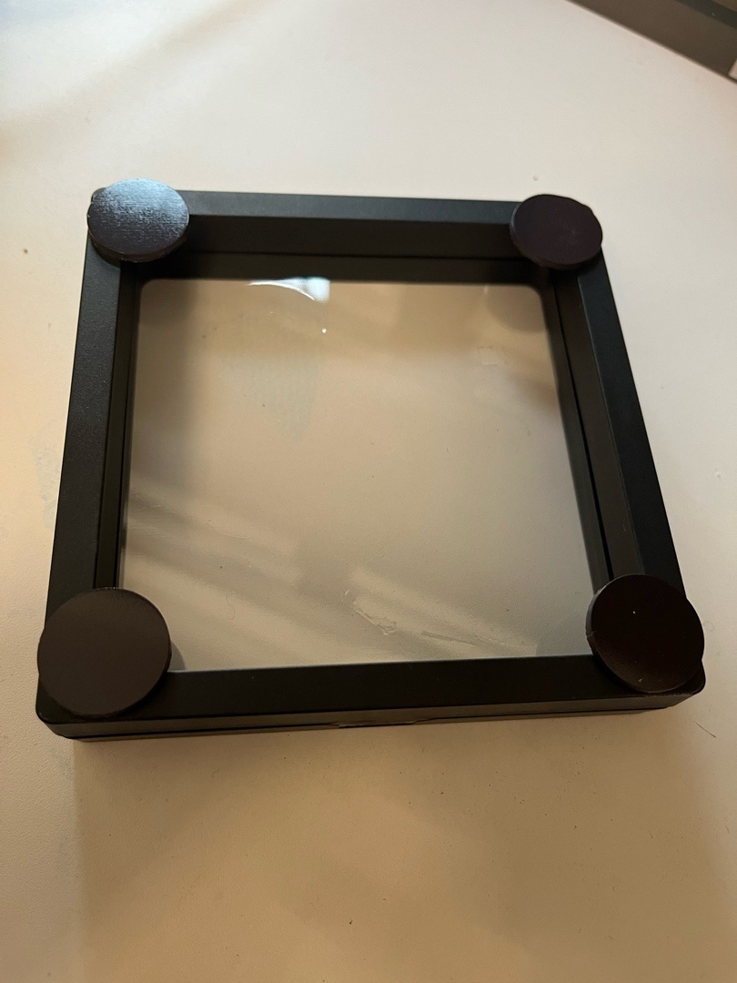 2. 翻到背面,用材料包的膠水結合磁鐵背膠,在4個角貼上磁鐵(注意別超過外框邊緣,後面才方便把多個外框拼湊到一起)