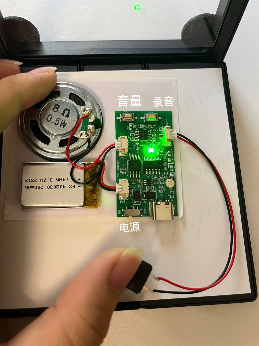 材料包裏面的音樂模組,有着16m的內存空間,可以通過Type-C接口連接電腦傳輸mp3文件或者用來充電。可以放一首高品質的音樂,或者幾首中低品質音樂(我的是後者)