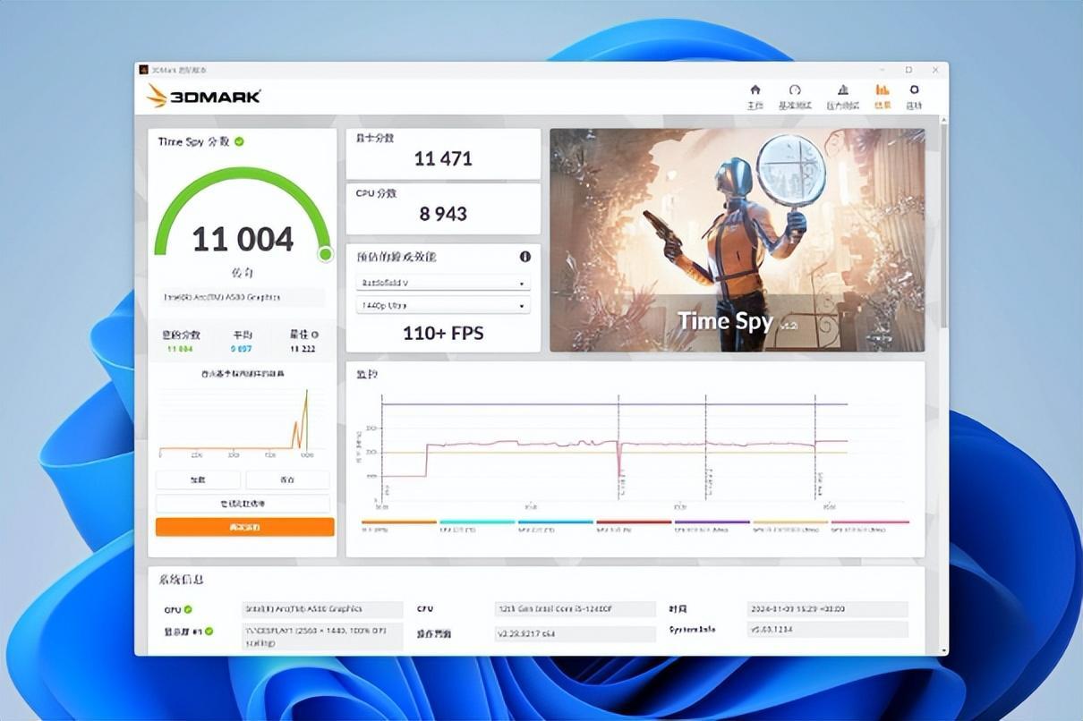 第三是针对DX12的TimeSpy模组,测试结果如下图所示:
