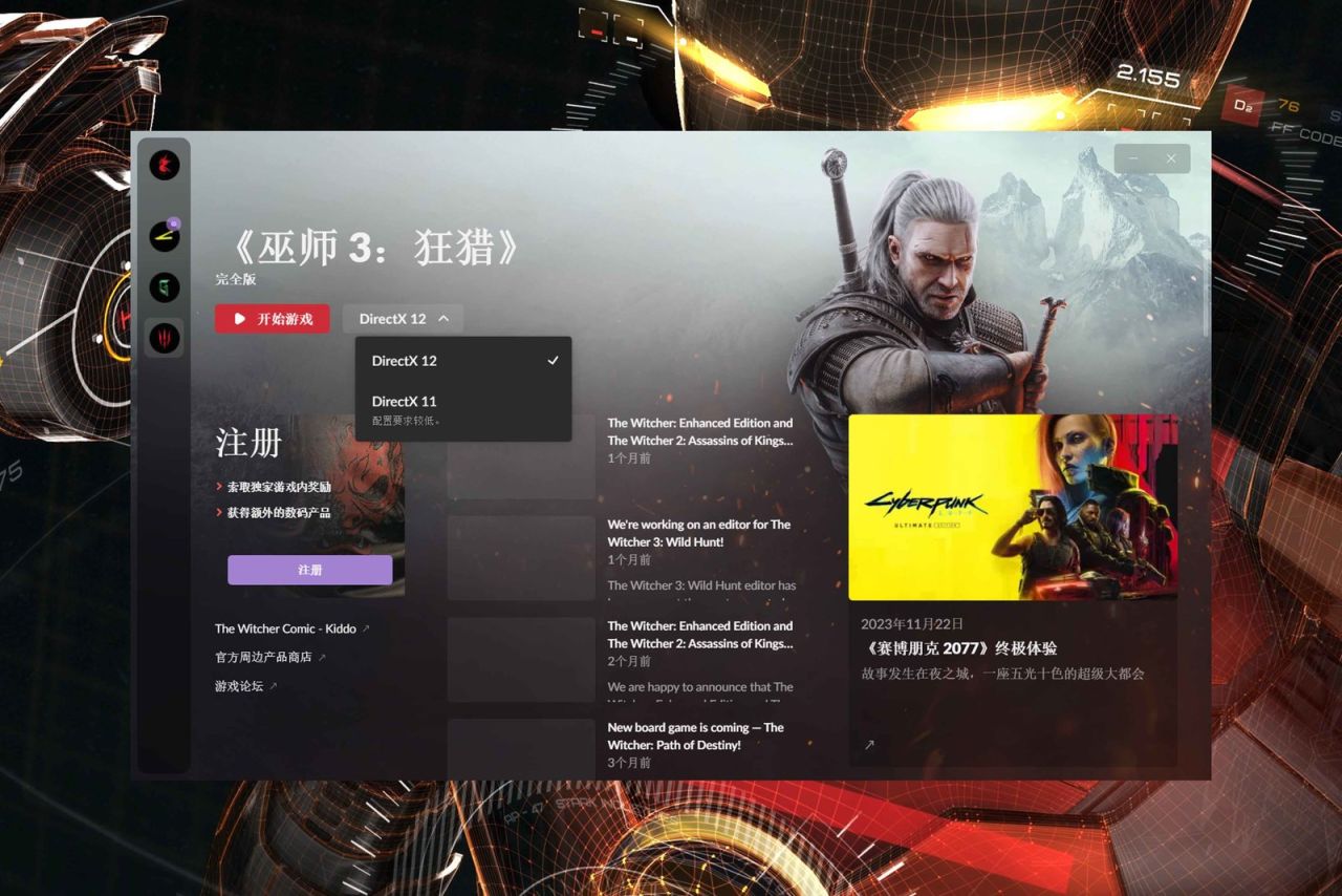 前文也提到过Intel显卡对DX12的支持比较好,大部分新游戏都是基于DX12制作的,部分重置版游戏需要手动选择,比如巫师三启动器就包含了DX版本切换功能。