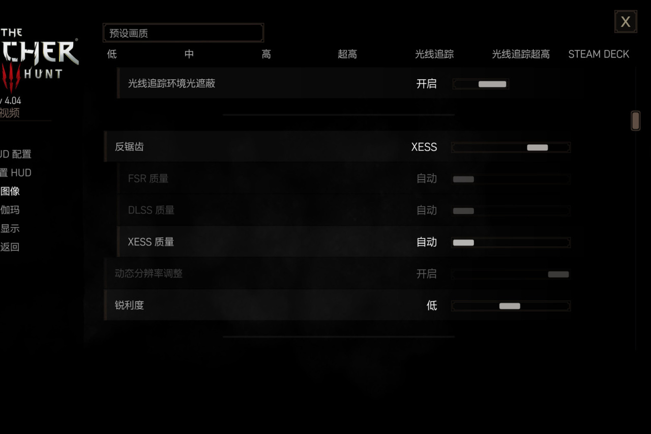 开启XeSS的方法也比较简单,只要游戏支持一般都在设置的画面配置页面里,A580作为中端显卡,建议用默认效果即可,选择高质量可能会造成卡顿。