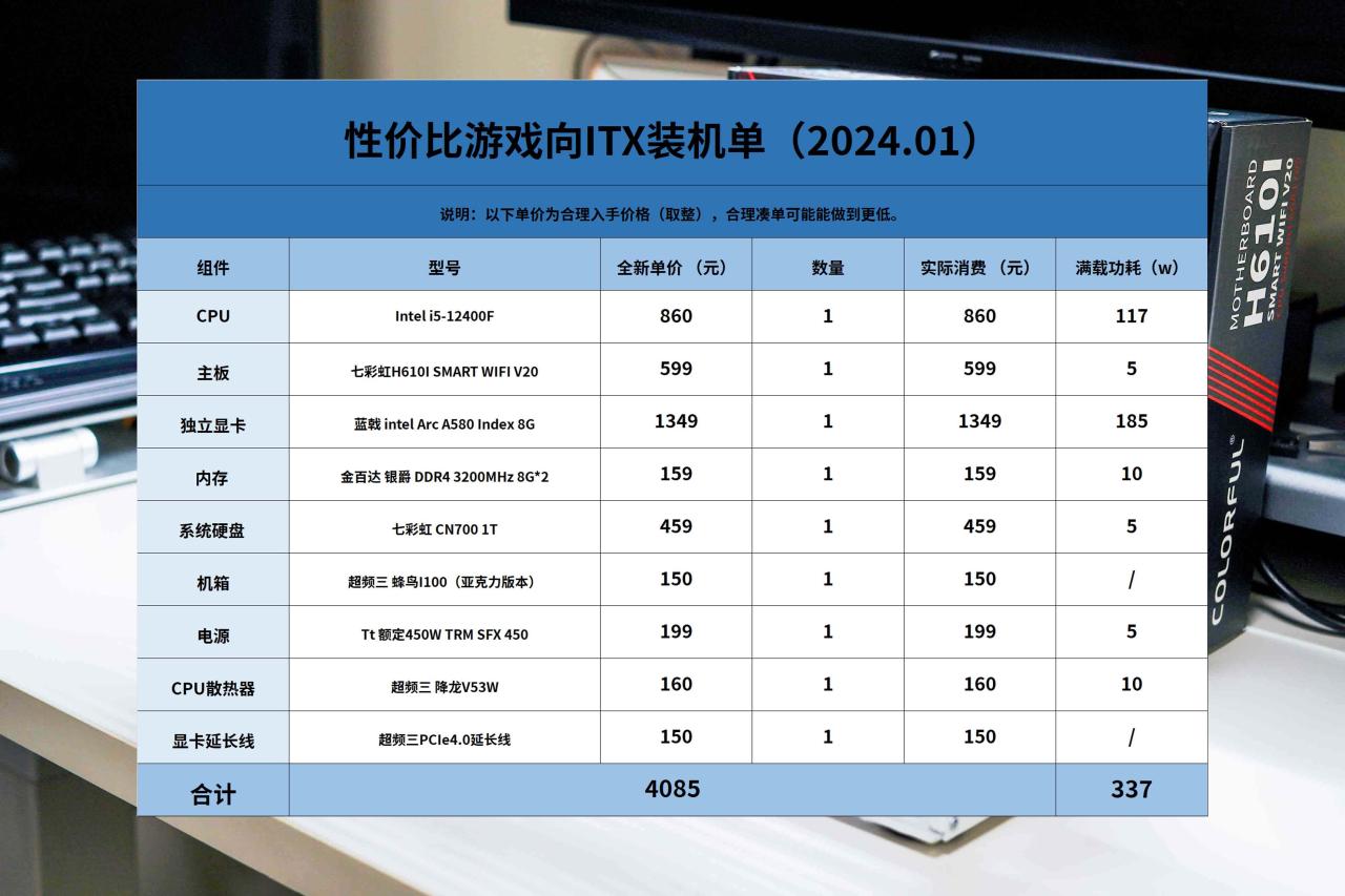 本文就和大家分享一下性价比向的ITX主机装机单,全部配件均可在主流电商平台入手全新货,完全不用担心翻车,欢迎点赞收藏打赏三连,有复杂问题咨询请单独联系。