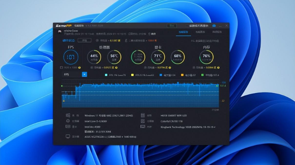 最后是标准3A游戏,案例选择巫师3(DX12版本),画质选择2K分辨率+全高+开启XeSS,测试结果如下图所示: