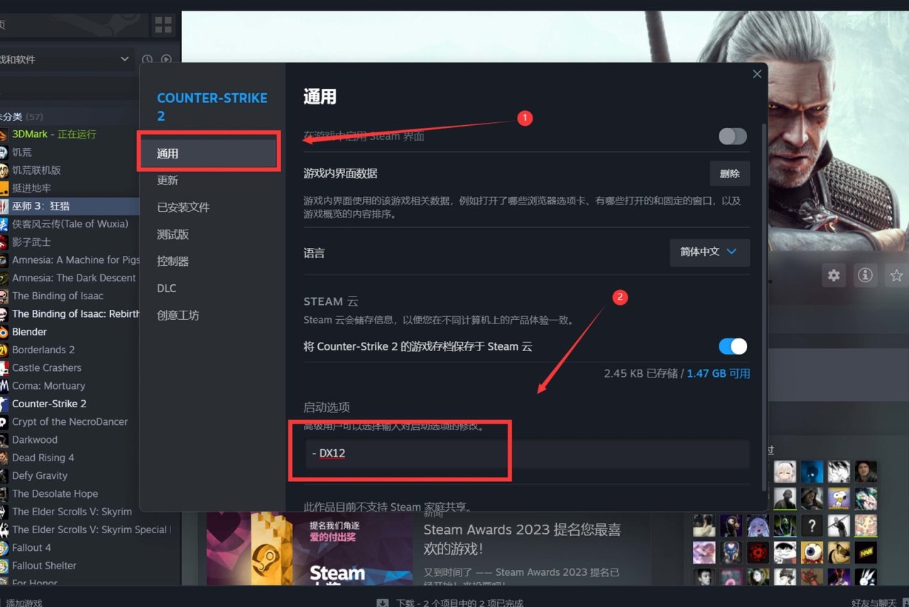 单独说一下CSGo2,毕竟这游戏玩家太多了,而且切换方法比较奇怪,Steam右键游戏图标选择属性,“通用”配置页面找到启动选项,添加下面的命令: