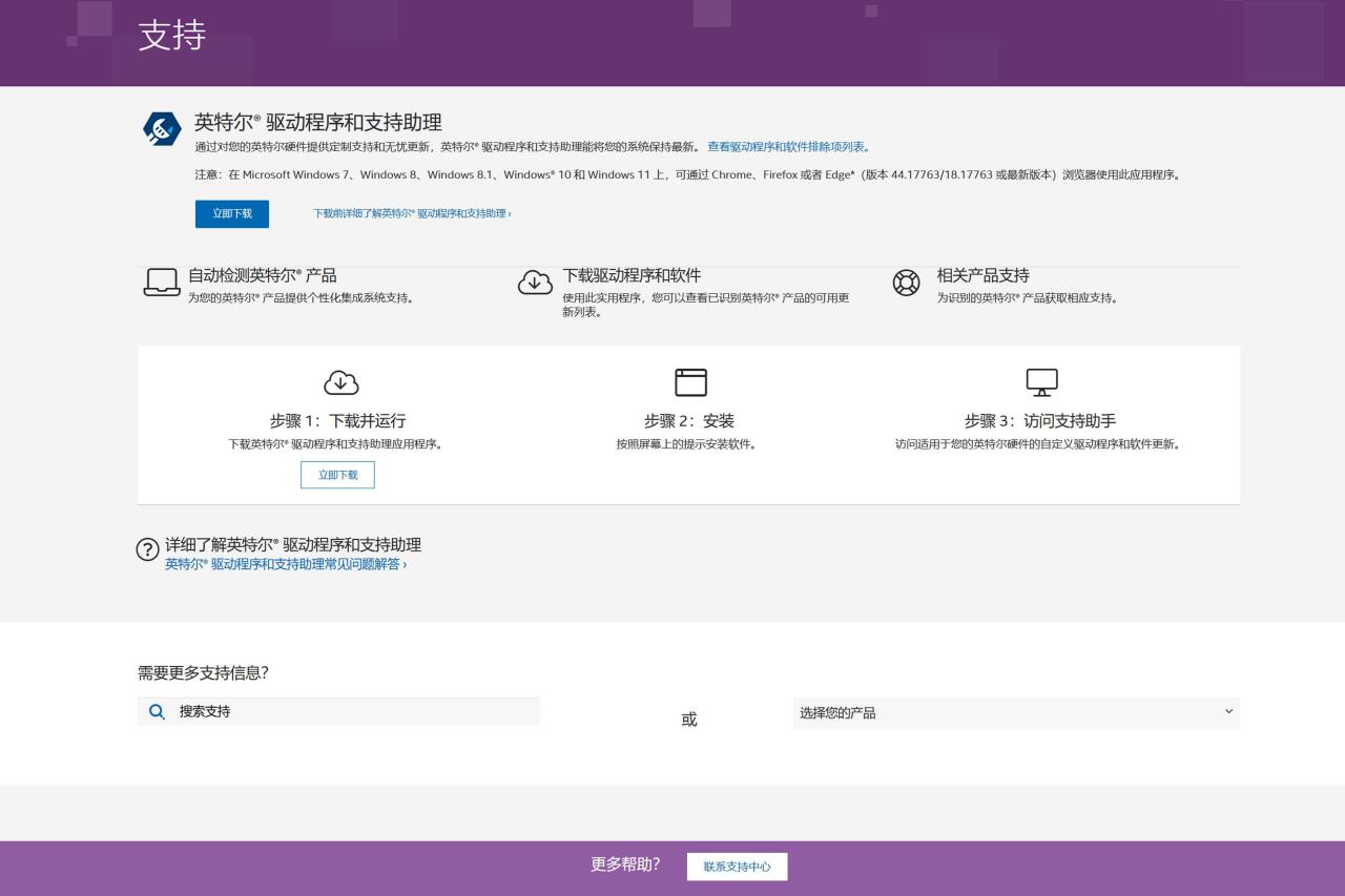 Intel全家桶的驱动安装比较简单,直接搜索Intel驱动程序和支持助理,安装完成后会自动检测,不用一个个安装就很舒服。