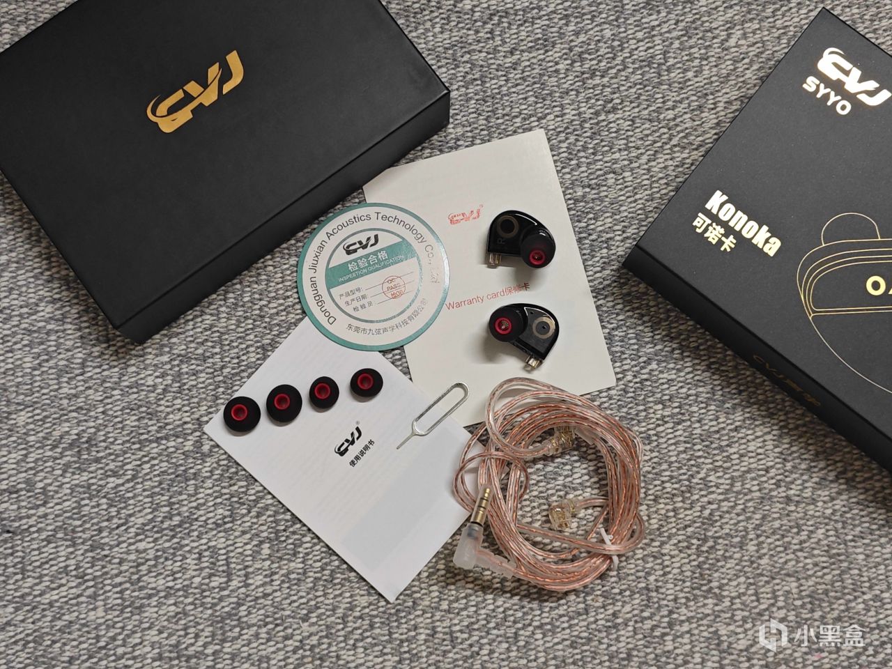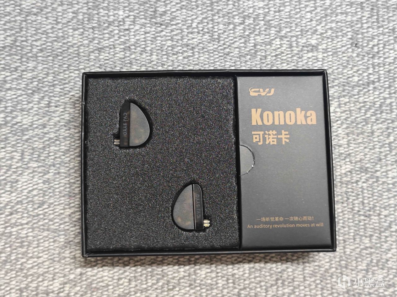 可诺卡的包装非常精致,打开外盒映入眼帘的是泡沫垫包裹的耳机。侧边盒还装着其他的配件,能看出CVJ是在包装下了功夫的,开箱扑面而来的高级感,让人惊喜感满满。