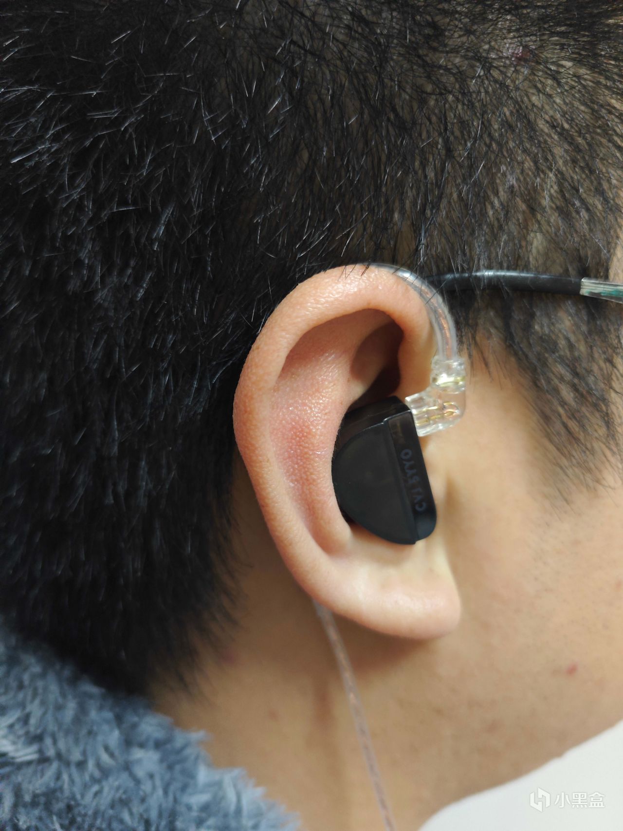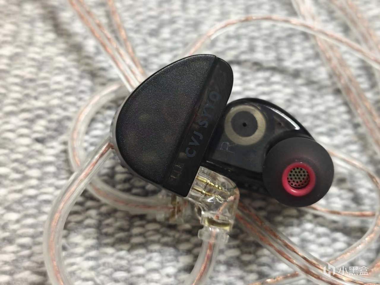 可诺卡的耳机本体采用的是高透树脂材质,半透明半磨砂的设计,颜值非常能打,正面能看到CVJ的logo。通过背面透明部位可以看到内部的发声单元及走线,科技感满满。耳机的重量实测为9.9g,配上线材的总重量为23.3g。重量控制得非常好。耳机的造型符合人体工学设计,长时间佩戴也不会有不适感。