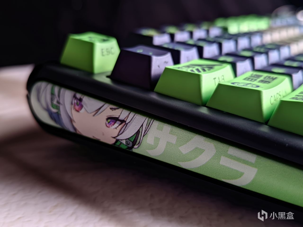 键盘侧面做了角色头像的喷绘,色准很好,显得非常漂亮,同时这个小装饰条是磁吸上去的,所以如果感觉不好带出门的话,也可以另外配置普通版的侧边装饰条进行替换,不过都买IP版了,应该不会有这种顾虑吧(笑)