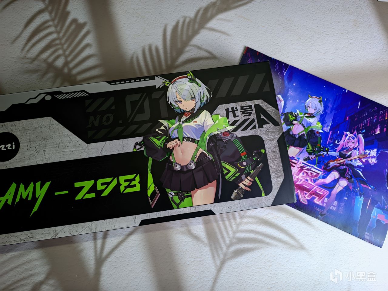 与其他版本的Z98不同,AMY的外包装还有一层纸套,上面写有AMY以及其立绘的部分,整体风格比较有废土机械风的内容,而人物方面带有一些赛博朋克风的服饰样式,同时我也是第一次见到黑色的珂芝标志。