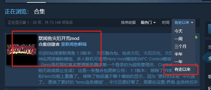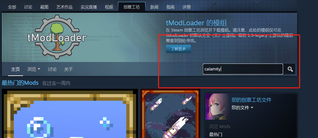 點擊右上的搜索框,輸入“calamity”,然後就出現了我們這次需要的災厄的mod及相關mod。