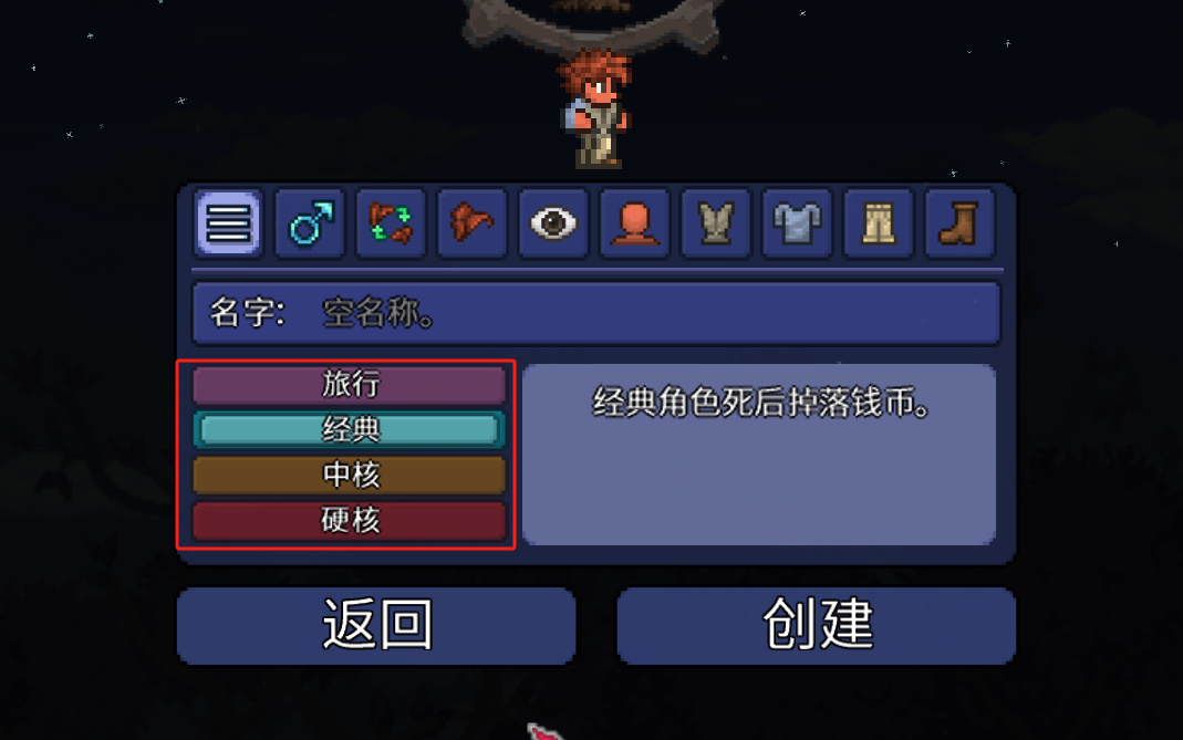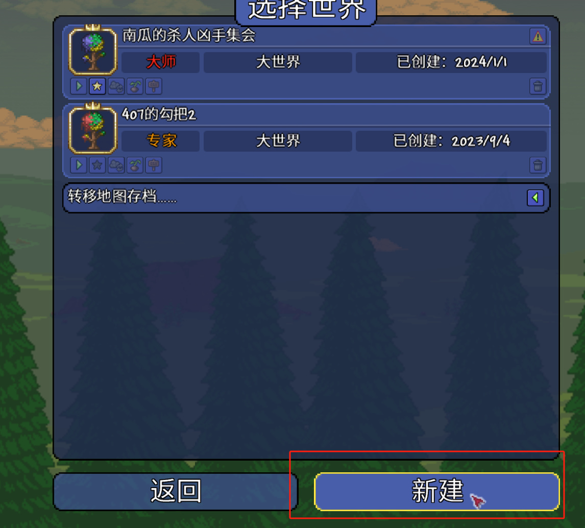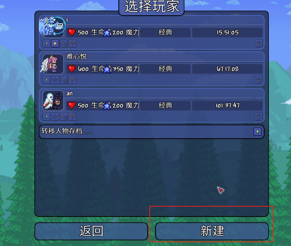 點擊“新建”,原版泰拉和tmodloader版本的存檔不是兼容的,需要重新創建人物。