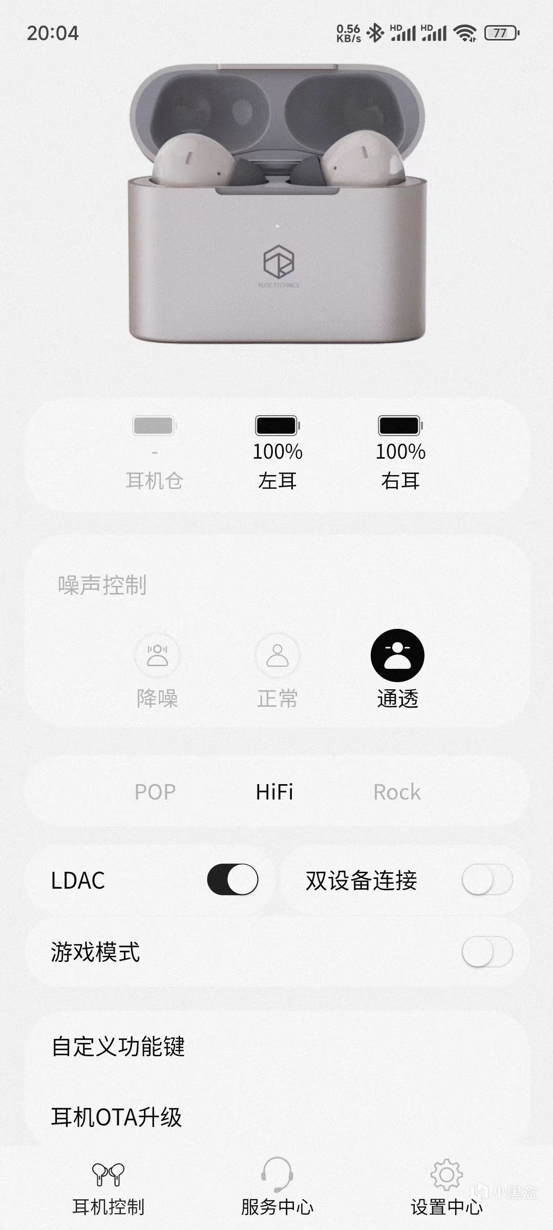 i3不仅音质出色,其他旗舰耳机该有的功能也是一点不落下。耳机本身支持IP54级防尘防水,还支持双设备连接,能实现无缝切换。配合上弱水时砂的APP,能对耳机进行更加深度的自定义。在APP中,不仅能直观地看到耳机仓、耳机的电量,还能在降噪、正常、通透、游戏这四个模式中来回切换。更有POP/HiFi/Rock三种类型可供选择。打开/关闭LDAC及双设备连接,自定义功能键及对耳机进行固件升级,功能非常全面。