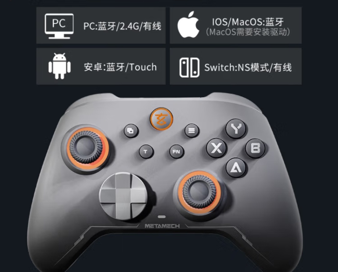 手柄为了支持老游戏或模拟器,可以切换到Dinput模式,也就是老手柄模式,按住select和start五秒即可切换,重复操作可切回原来的模式,手柄回报率为有线500hz,无线/蓝牙130hz,支持三模连接,支持的平台有pc/安卓/switch/ios,电池为800mAh,重量为220g。