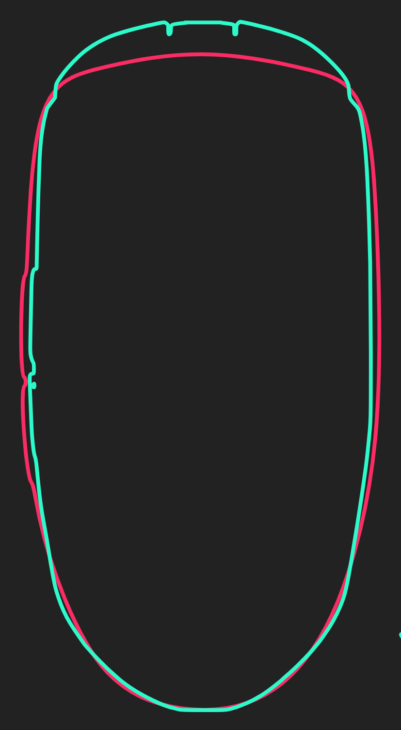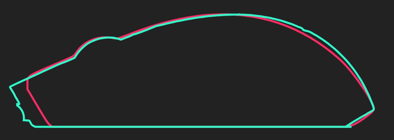 从俯视图轮廓可以发现这次影刃3无线版的侧裙也要更往外突出一些,但由于影刃3的横截面类似一个倒梯形,底部有收腰设计,所以这部分对横握的握感并没有多大的变化。
