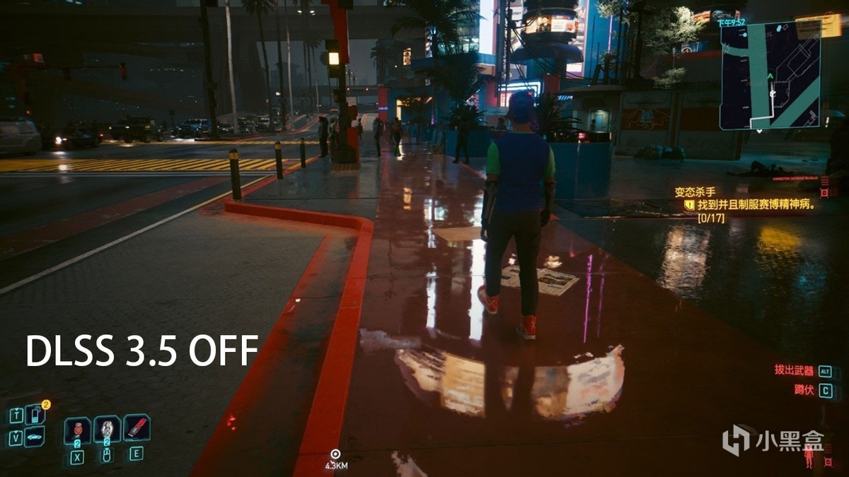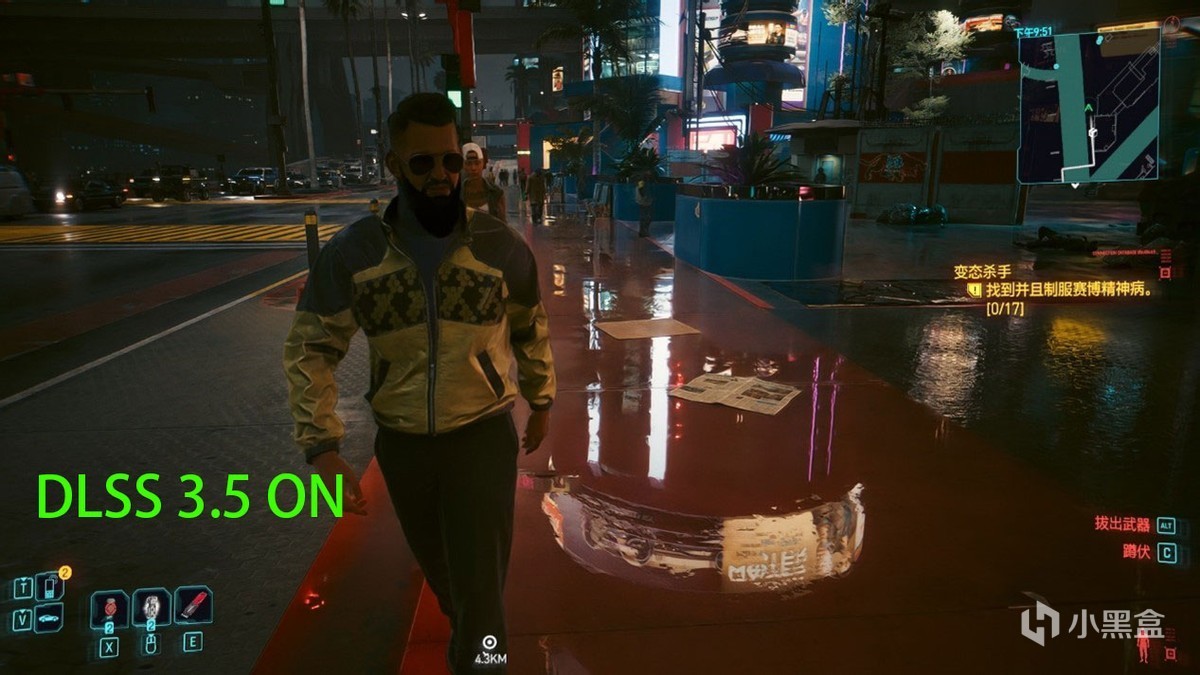 同时在实际游戏中,DLSS 3.5带来的画质变化也是质的攀升。例如在《赛博朋克2077:往日之影》中,早期车灯照射不准确的效果被修正,原因是之前人工调整降噪器的采样不准确,现在交予DLSS 3.5的AI不仅节省了调整的成本,效果也非常出色。特别在广告牌、霓虹灯反射的积水路面上,有了更准确的表达。