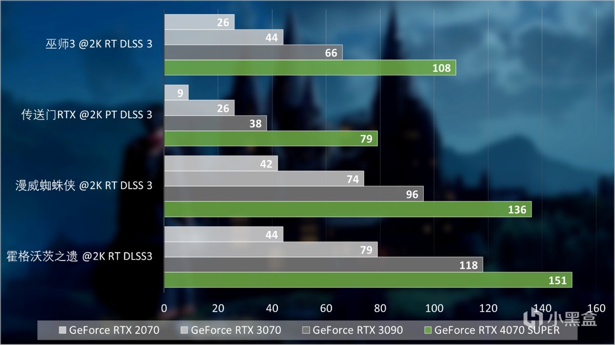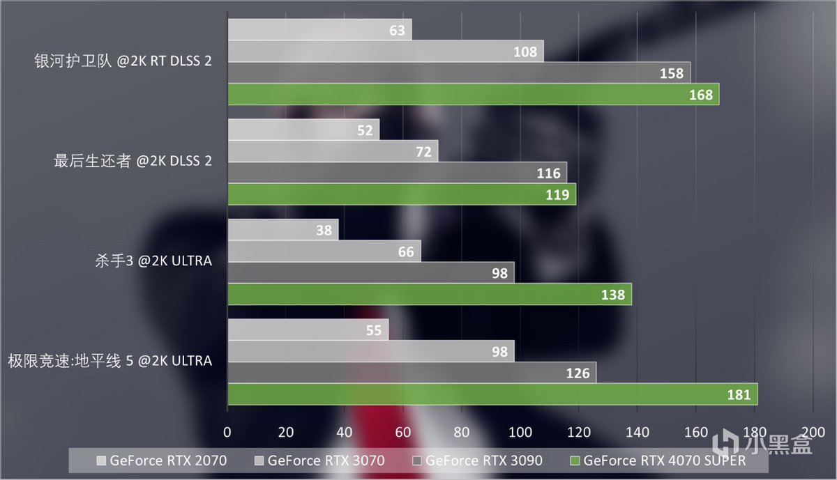 在更多的游戏测试中,我们以2K分辨率最高游戏画质作为参考,分别对比RTX 2070,RTX 3070和RTX 3090,差距感一下子就拉满了,GeForce RTX 4070 SUPER对比RTX 2070提升最多甚至可以有800%,而对比GeForce RTX 3070,表现则可以达到55%至200%以上。