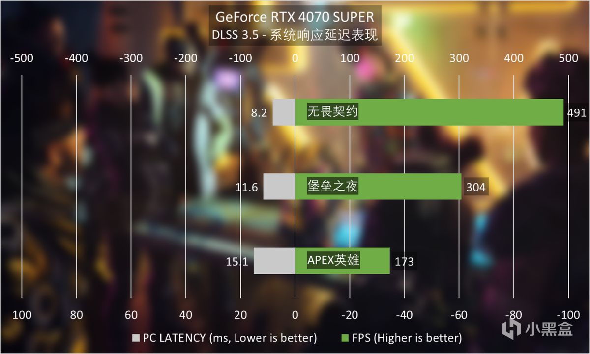 与此同时,我们也做了《无畏契约》《堡垒之夜》和《APEX英雄》的系统响应延迟测试,GeForce RTX 4070 SUPER与DLSS 3.5双重加持下,甚至可以让游戏的延迟部分接近10ms左右。可见GeForce RTX 4070 SUPER已经能够很好的承担竞技GPU的工作。