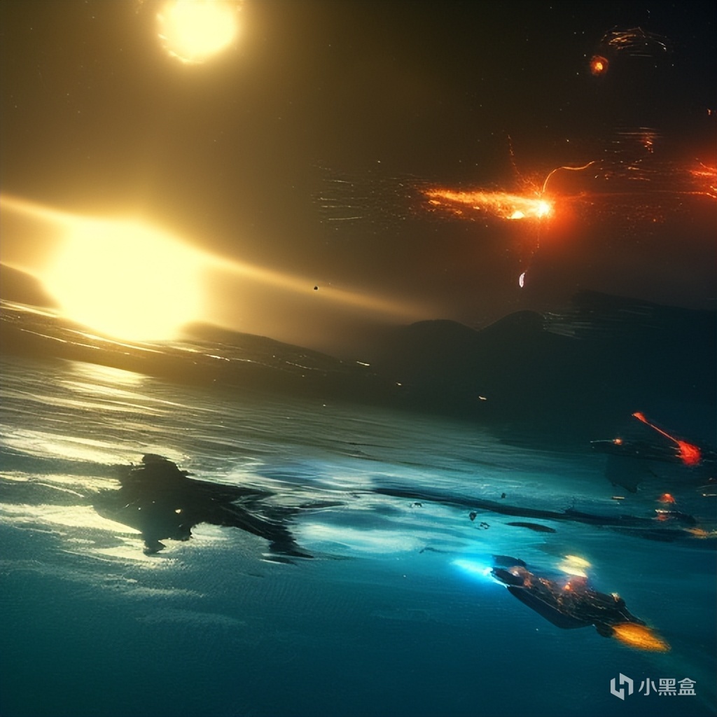 epic space battle over a water planet, many ships, cinematic lighting, Depth of Field, hyper-detailed, beautifully color-coded, 8k, many details, chiaroscuro lighting