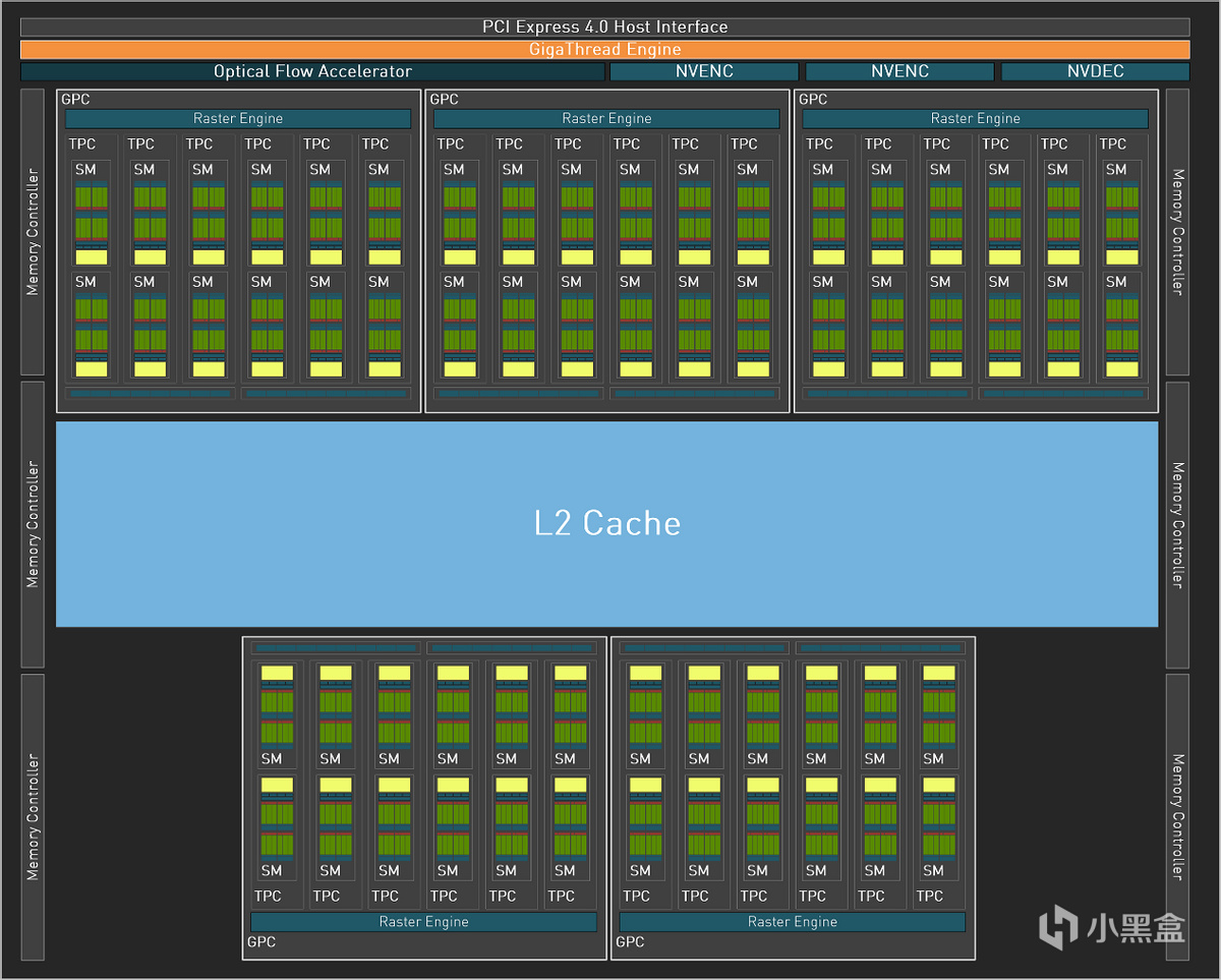 我们知道Ada Lovelace架构GPU中包含了若干个GPC(Graphics Processing Clusters,图形处理集群),GPC下包含若干个TPC(Texture Processing Clusters,纹理处理簇),再往下就是SM、CUDA、RT Core、Tensor Core等等。每个GPC之间包含的TPC数量相等,当GPU进行定位区分的时候再进行GPC、TPC的物理屏蔽实现。