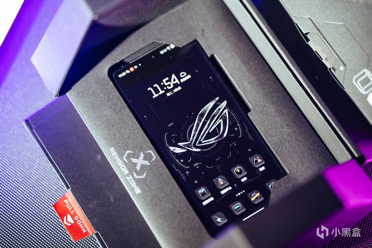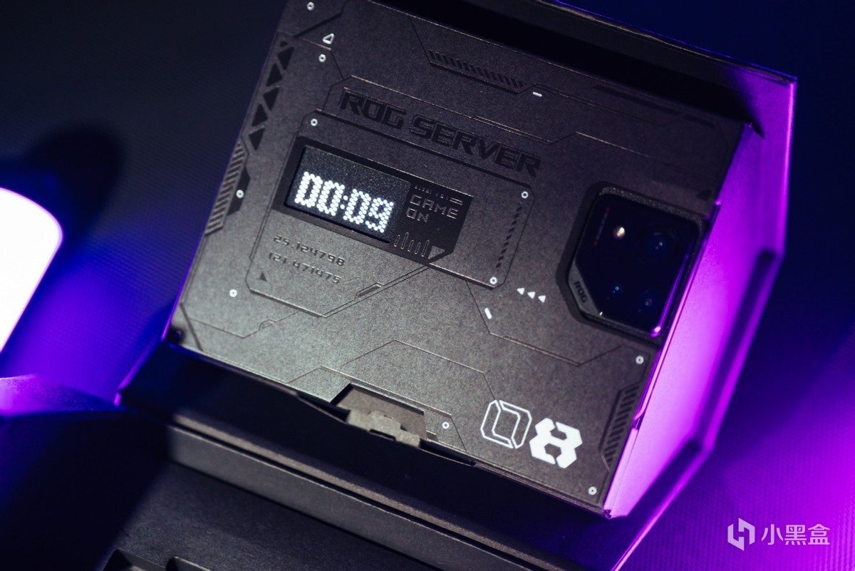 其中最让人印象深刻的是任务重装载武器的环节,需要手机NFC对准包装盒下方的触发点激活。另外还需要将手机插入包装盒上方的插槽内,用来展示ROG 8 Pro特有的AniMe Vision点阵效果,相当拉风。