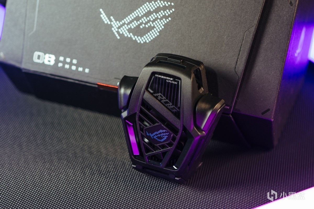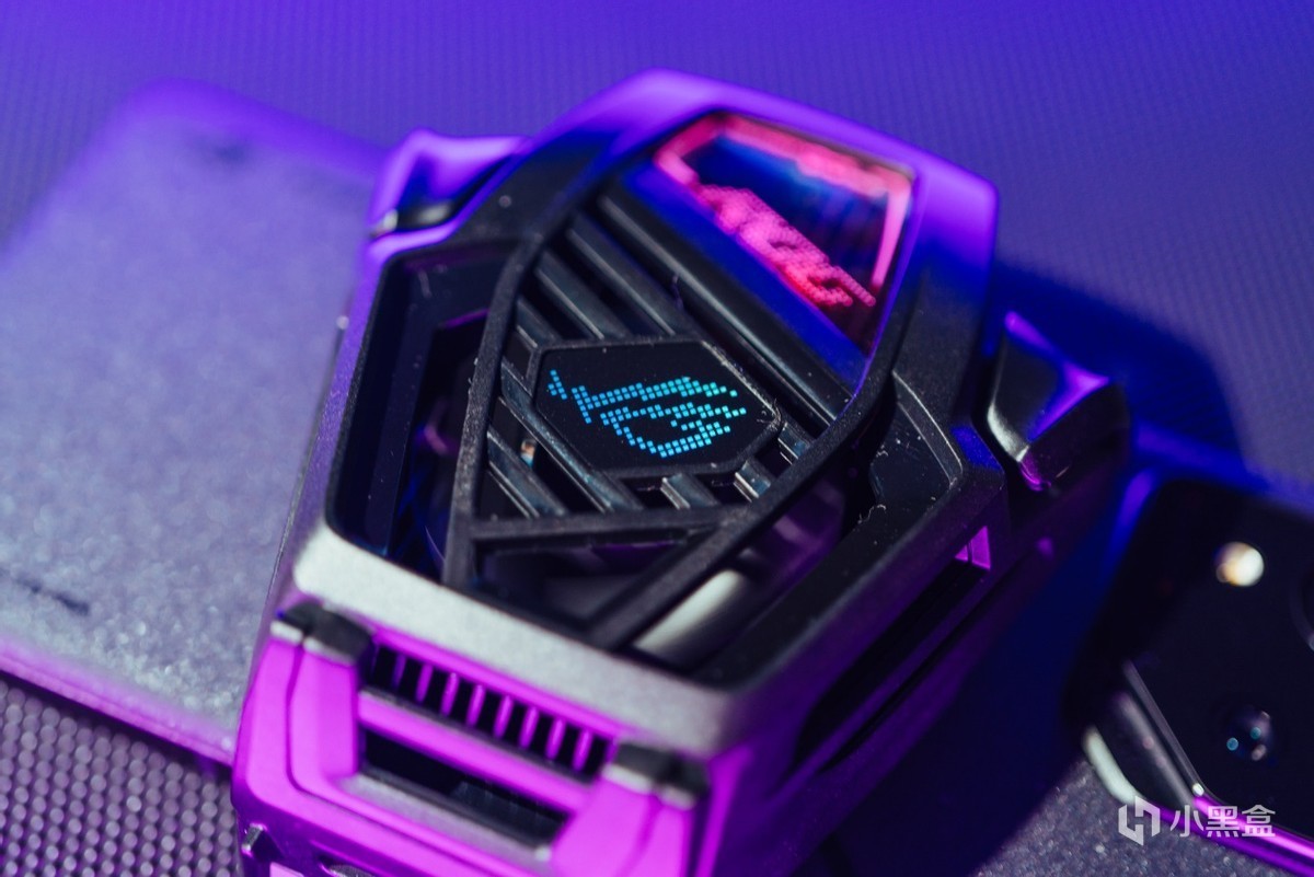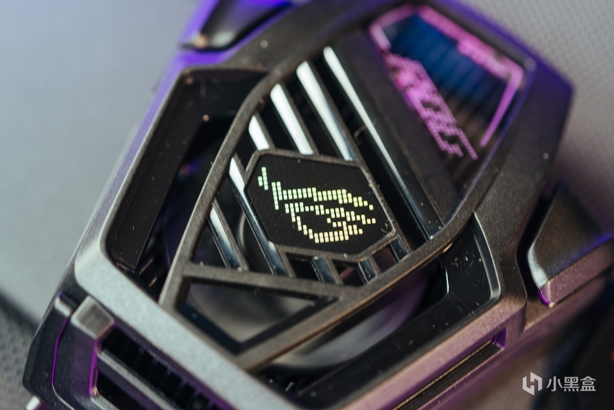 但这也仅仅是散热设计的一部分,ROG 8 Pro顶配版还默认配送了酷冷风扇X。酷冷风扇X与ROG 8 Pro的接触面提供了36x38mm的半导体制冷面积,是上一代的2.6倍。同时酷冷风扇X的体积设计缩小了29%,减轻了10%,但效率提升了30%。