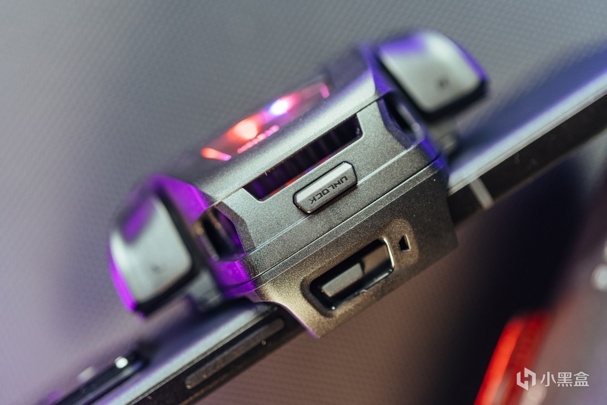 ROG 8 Pro与酷冷风扇X的搭配可以说是严丝合缝。按下酷冷风扇X上方的解锁卡扣,让酷冷风扇X的USB-C接口与ROG 8 Pro紧密相连,合上卡扣,合体大功告成。